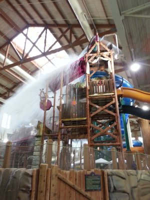 Right outside the gift shop we came face to face with a huge viewing window that allowed us to look upon the water park. There was a wave pool, sprinklers, and slides that started inside, went outside and then ended back inside the building. We stood there open mouthed as we watched all the different activities going on.