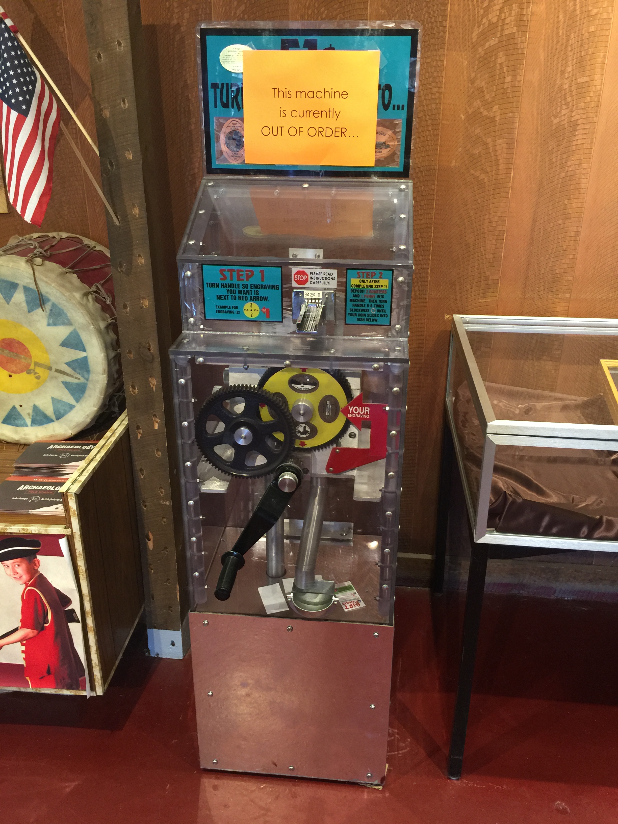 As you can see from the above picture just outside the gift shop was a penny machine. I headed over but quickly noticed the large sign tape to the top.