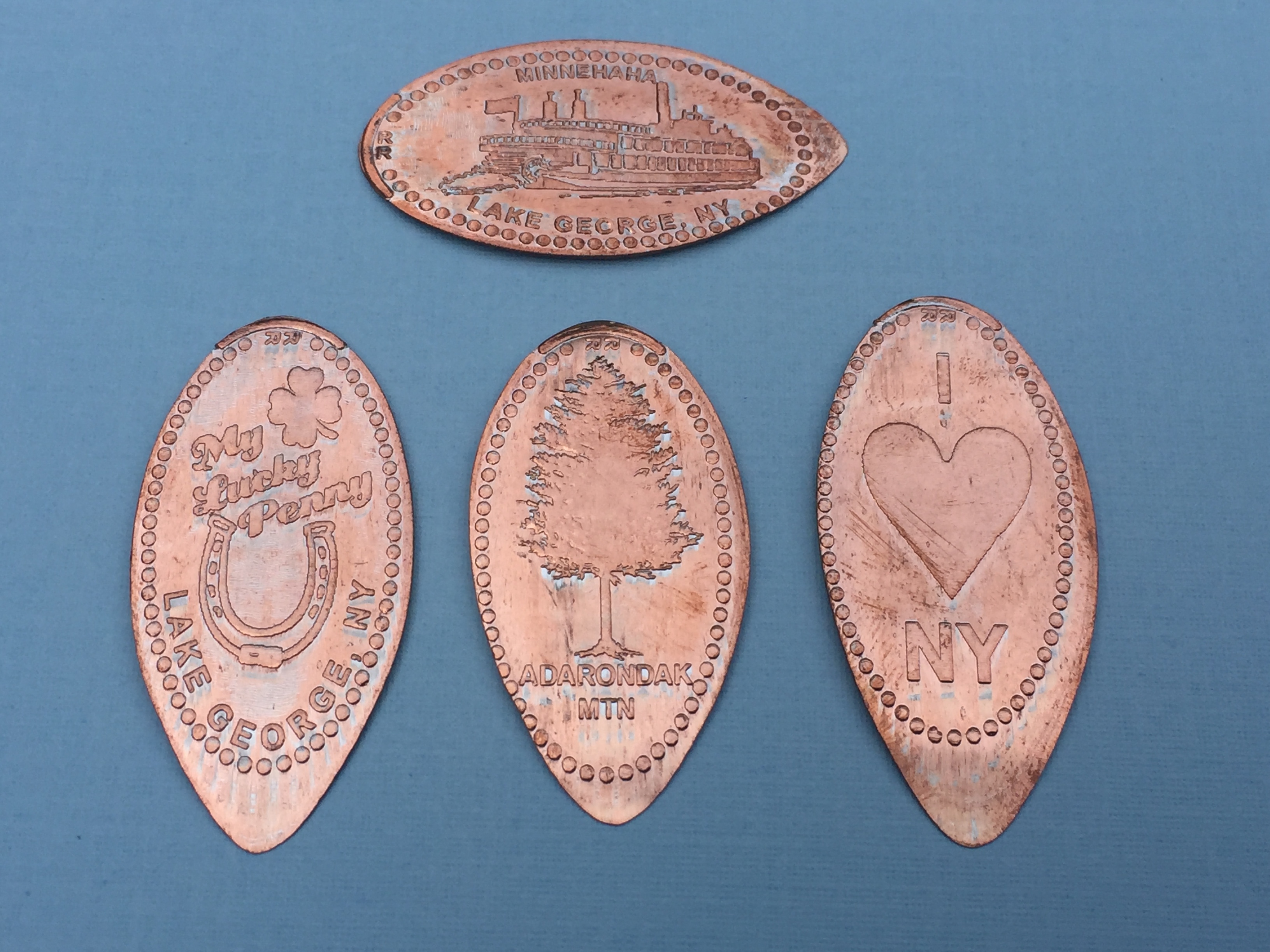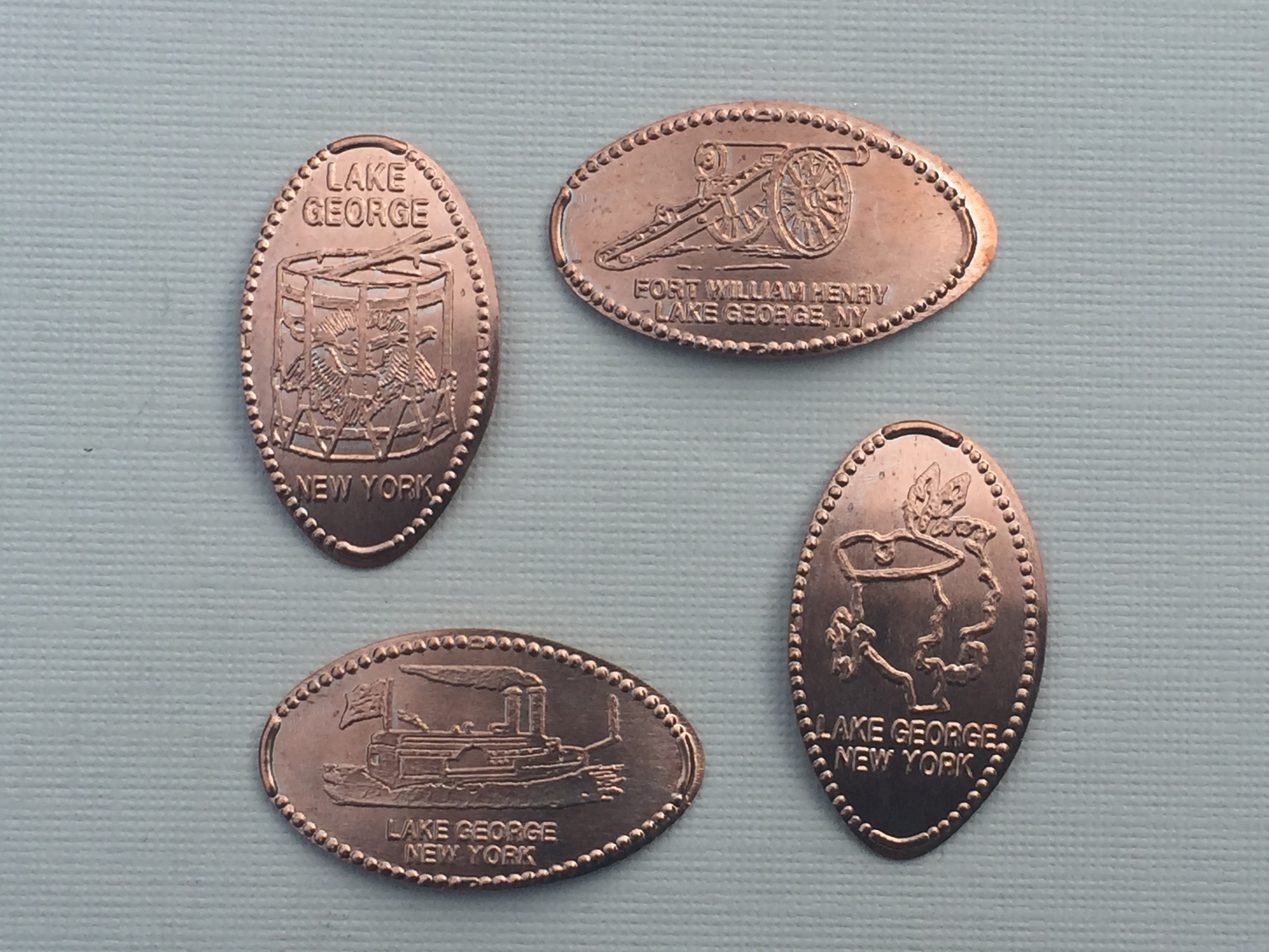 The pennies had some similar images to ones I had already collected but were still a great addition to my collection. The coins showed a Colonies and Native America, I Love Lake George, a Cannon, and a Steam Powered Paddle Boat.