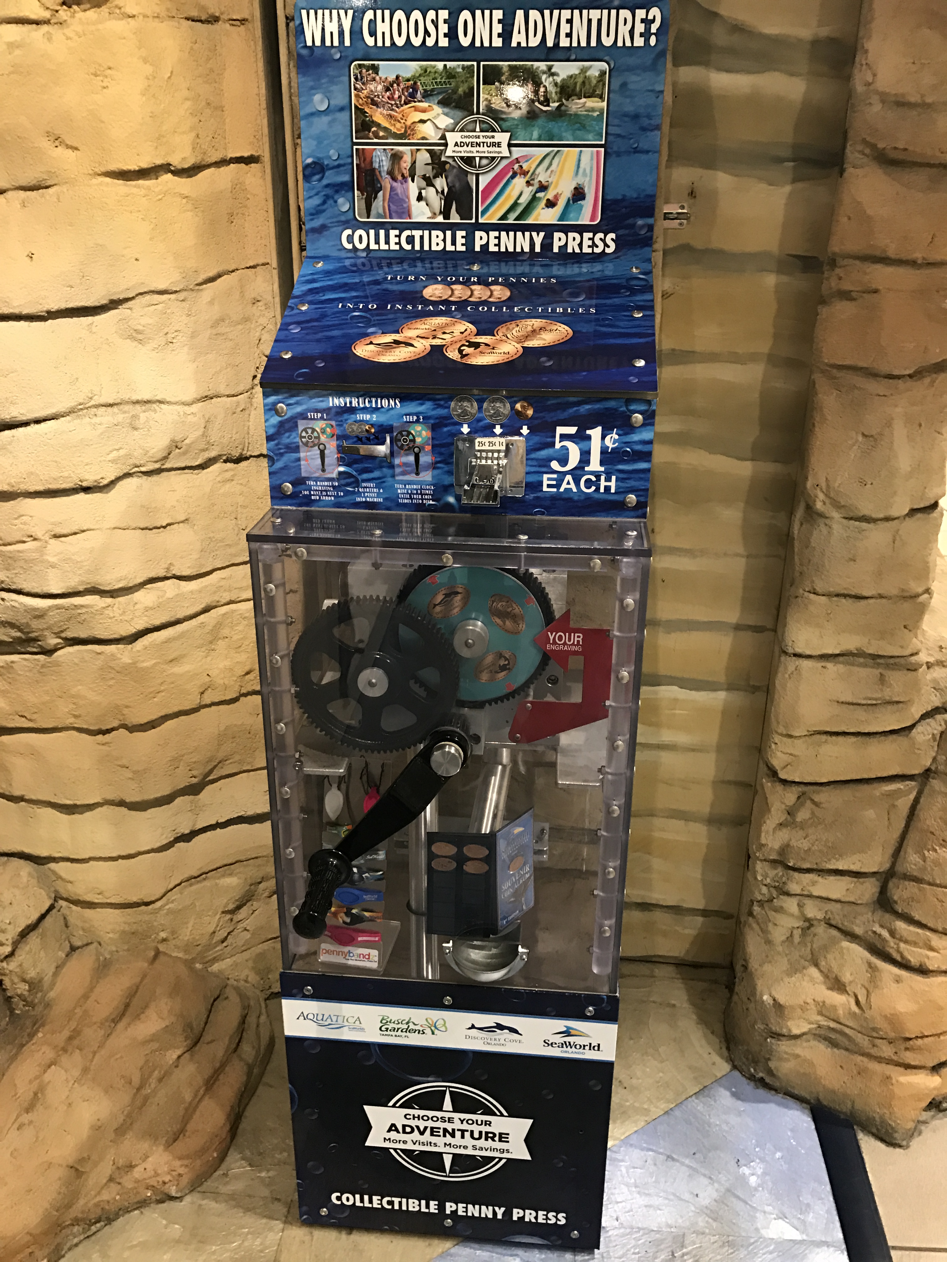 The SeaWorld gift had just what I was looking for (plush sea creatures) but more importantly a penny machine. I could feel my collecting anxiety start to melt away.