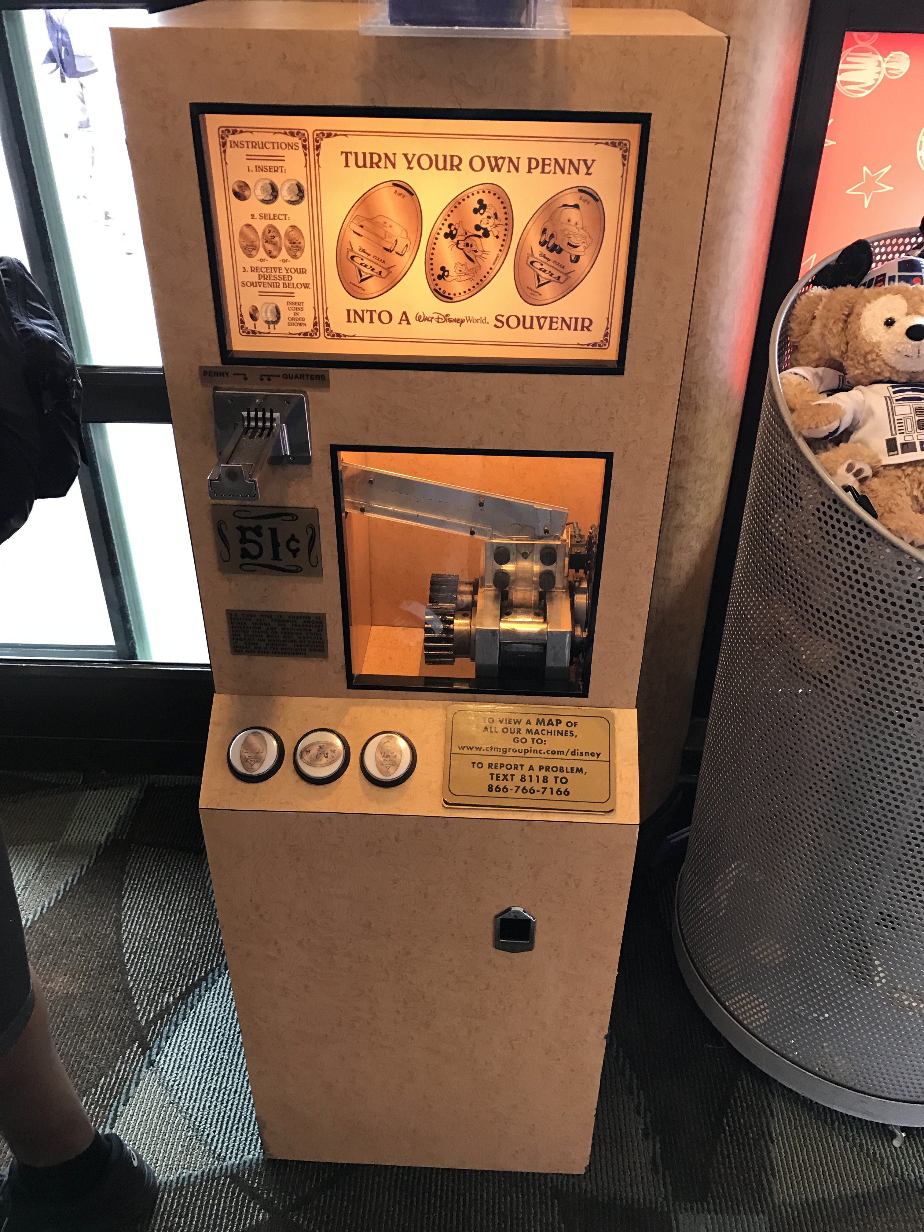 Now it was time for more Star Wars. Unfortunately the wait time for the Launch Bay and visited with some of the characters was just way too long. Instead we headed in to the Launch Bay gift shop which is still pretty cool. They are some nice movie memorabilia inside to check out, and some Star Wars toys and souvenirs I just haven’t seen anywhere else. As you exit the store there is a new penny machine right outside.