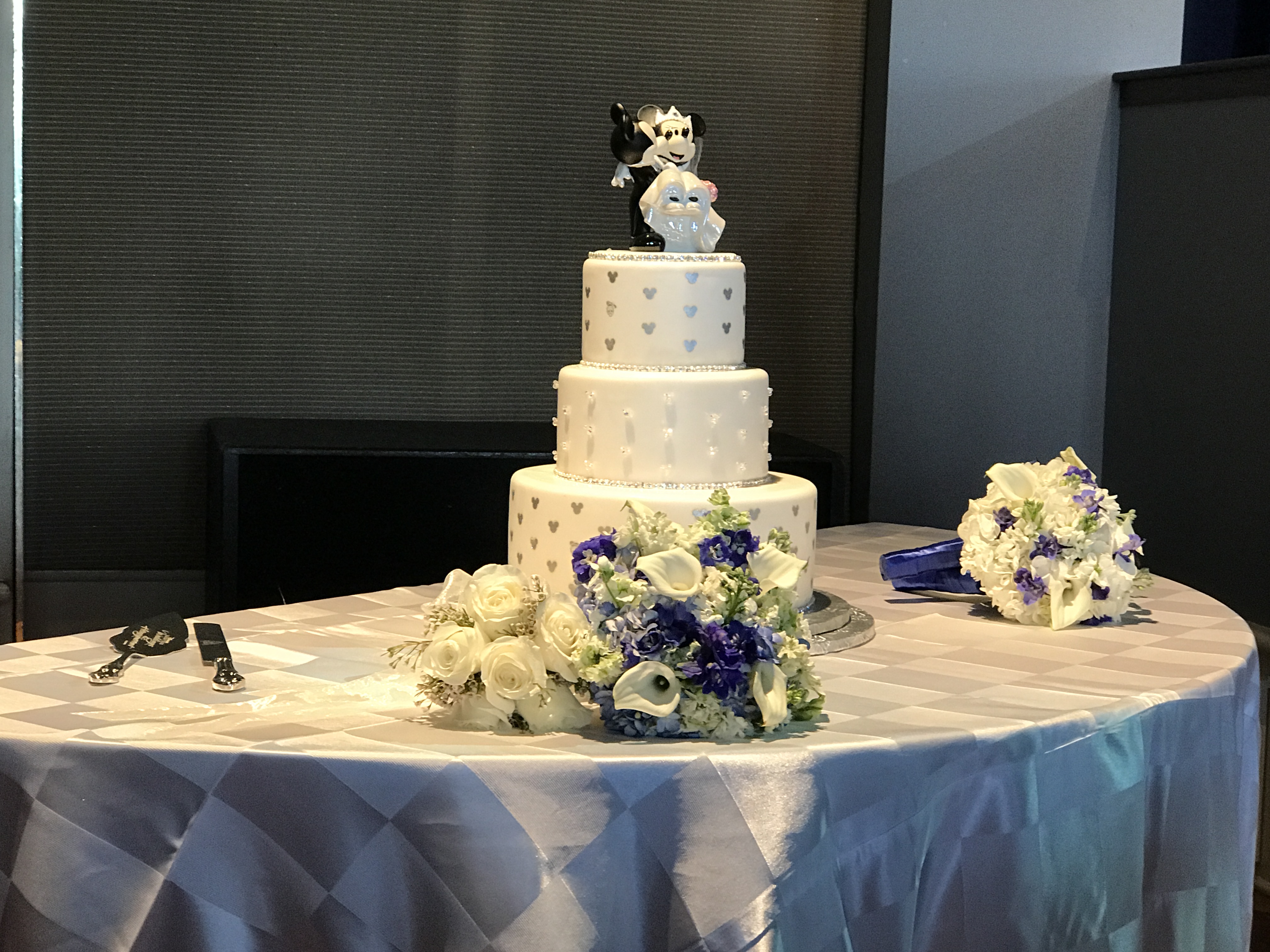 Inside is where the reception was held. Our table assignments were designed like the old fashion paper fastpasses which I thought was a really cool touch. The cocktail hour was very nice and we got to catch a glimpse at the cake.