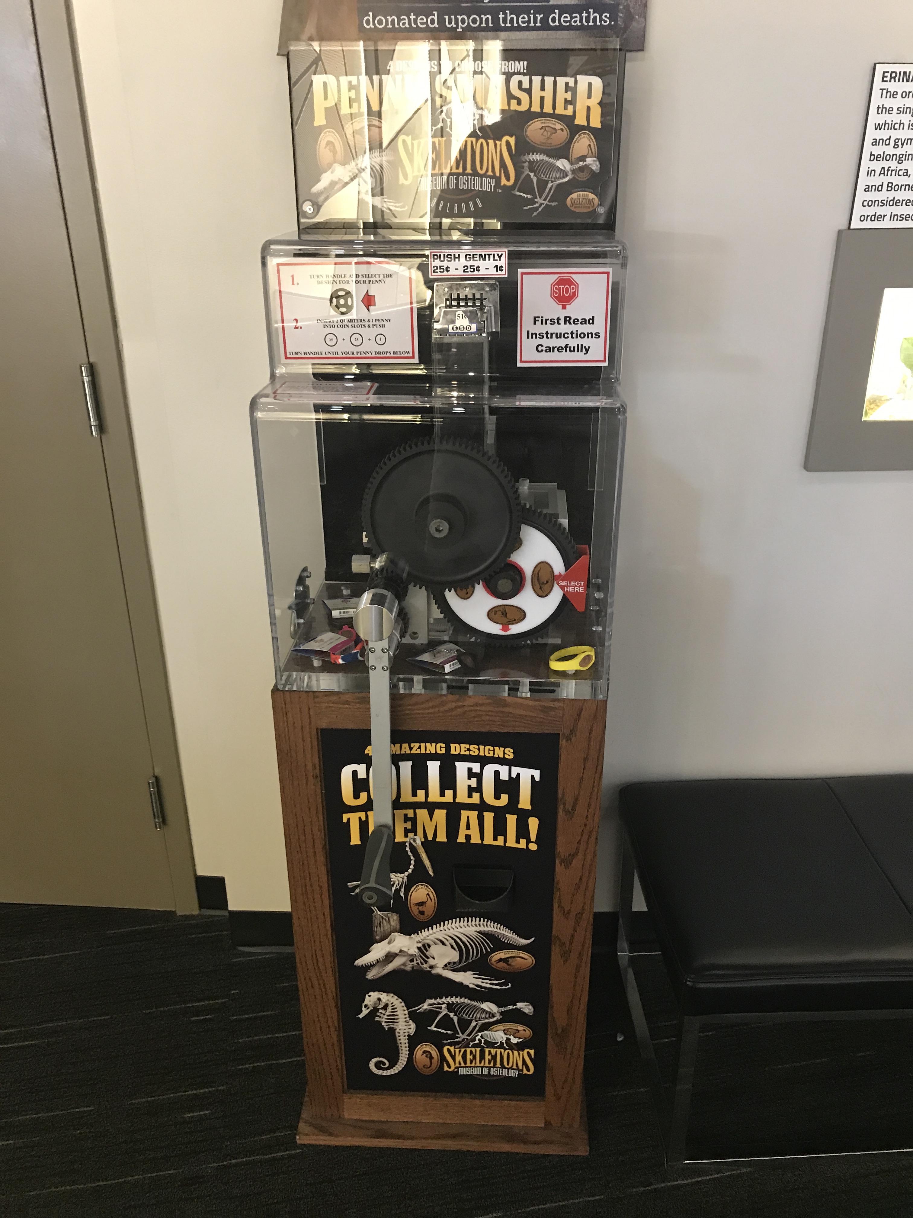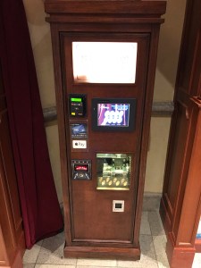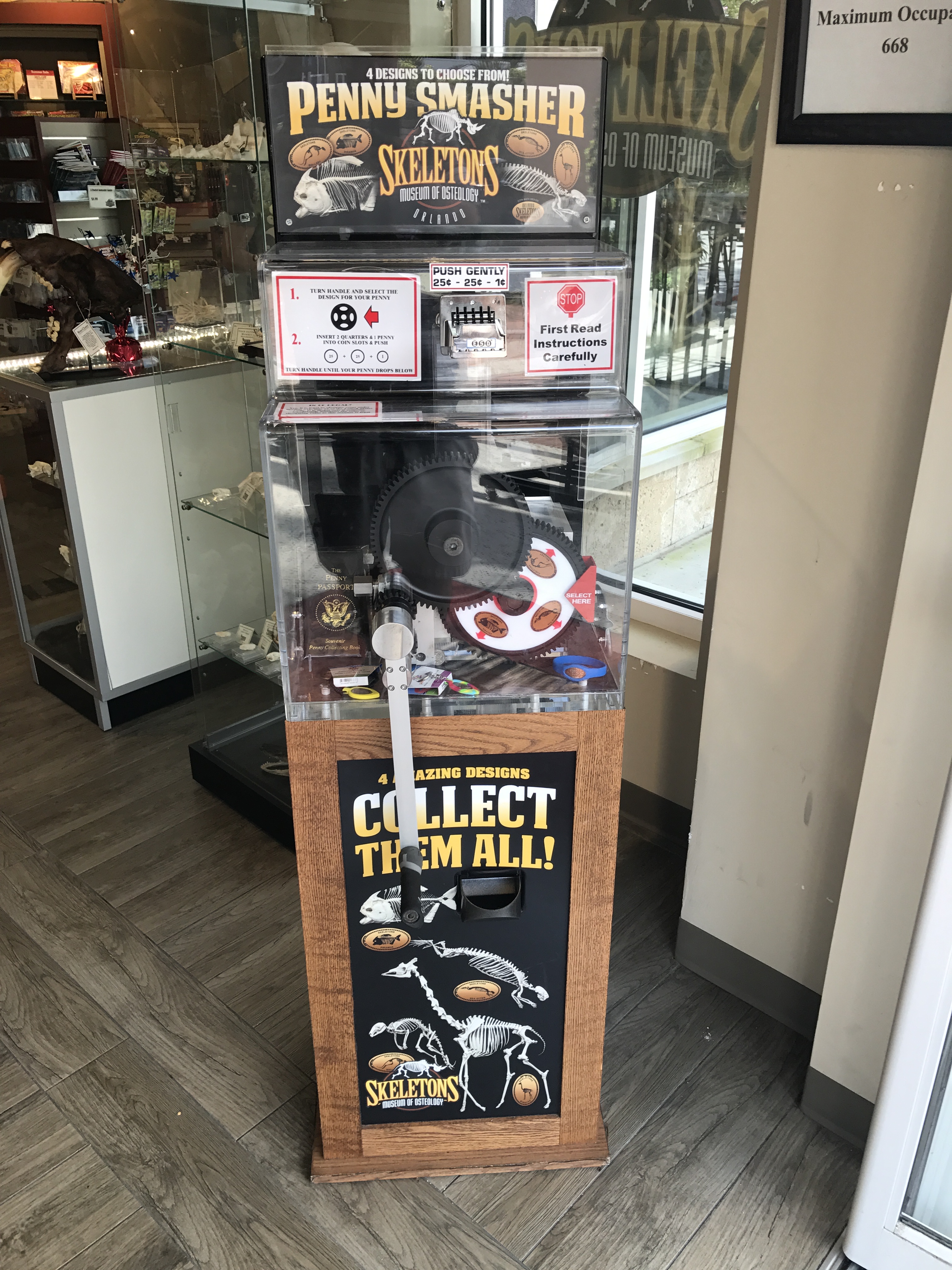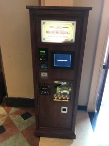 I apologize for the dark photo above of the machine, this area is really dark inside and with the bright light of the marquee makes taking pictures here pretty difficult. This was the best of the bunch I tried to take. As I mentioned earlier this is another 8-Design penny sized token machine. One design is $1 or all eight for $5.