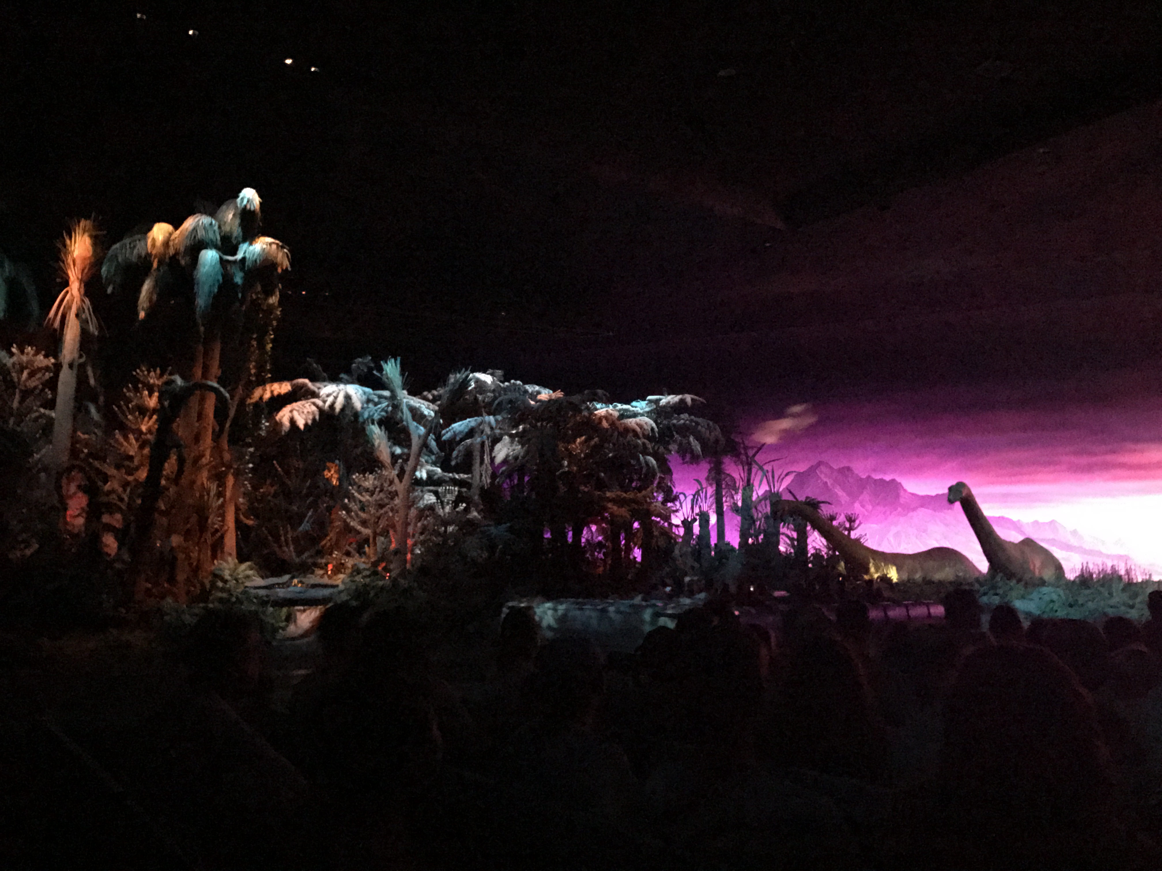 Eventually after the first movie segment is over you move into the next room which has these large slow-moving vehicles. Once inside the next part of the movie starts and the vehicles eventually start moving into another room which transforms you back to the age of the dinosaurs.