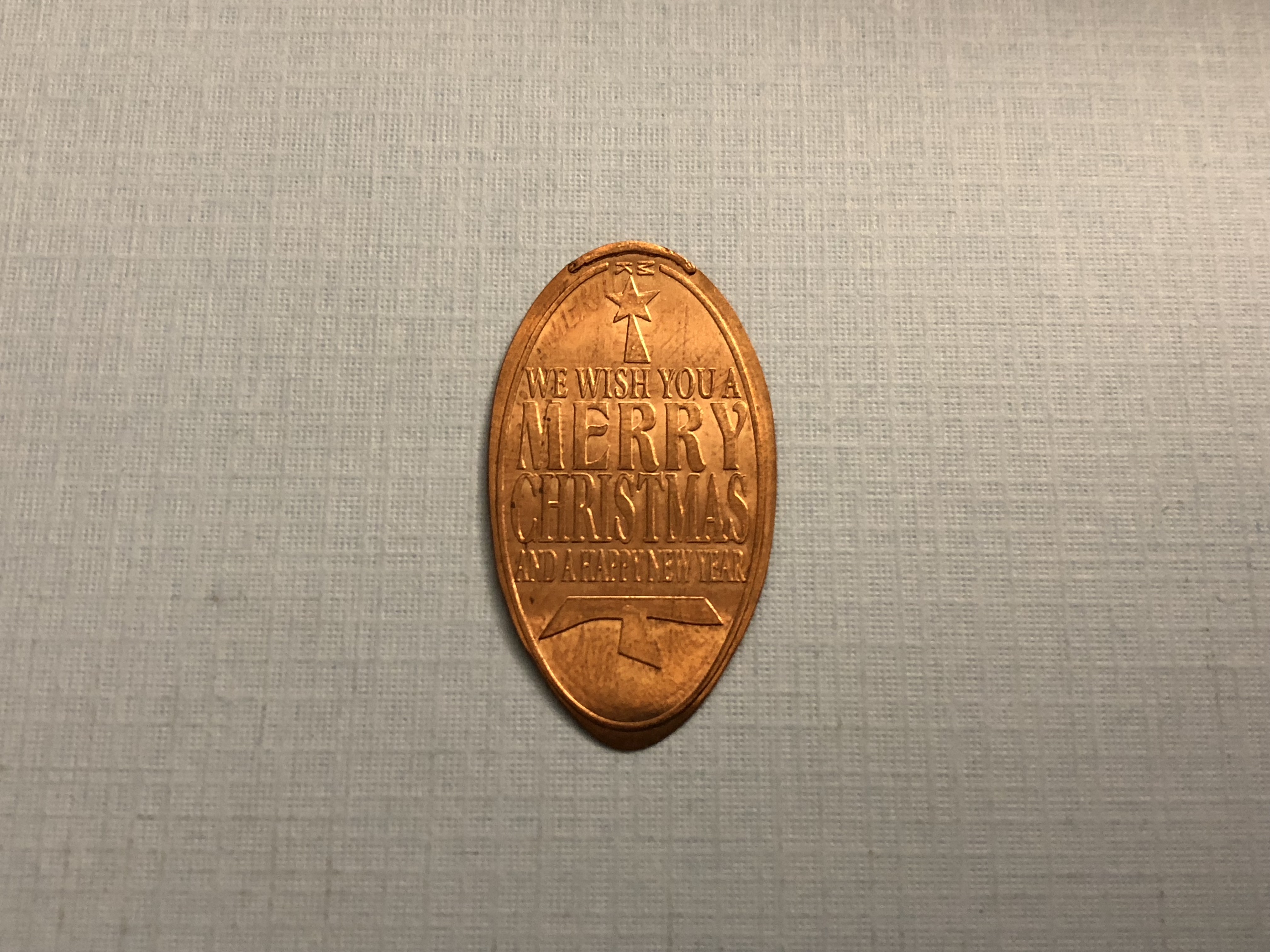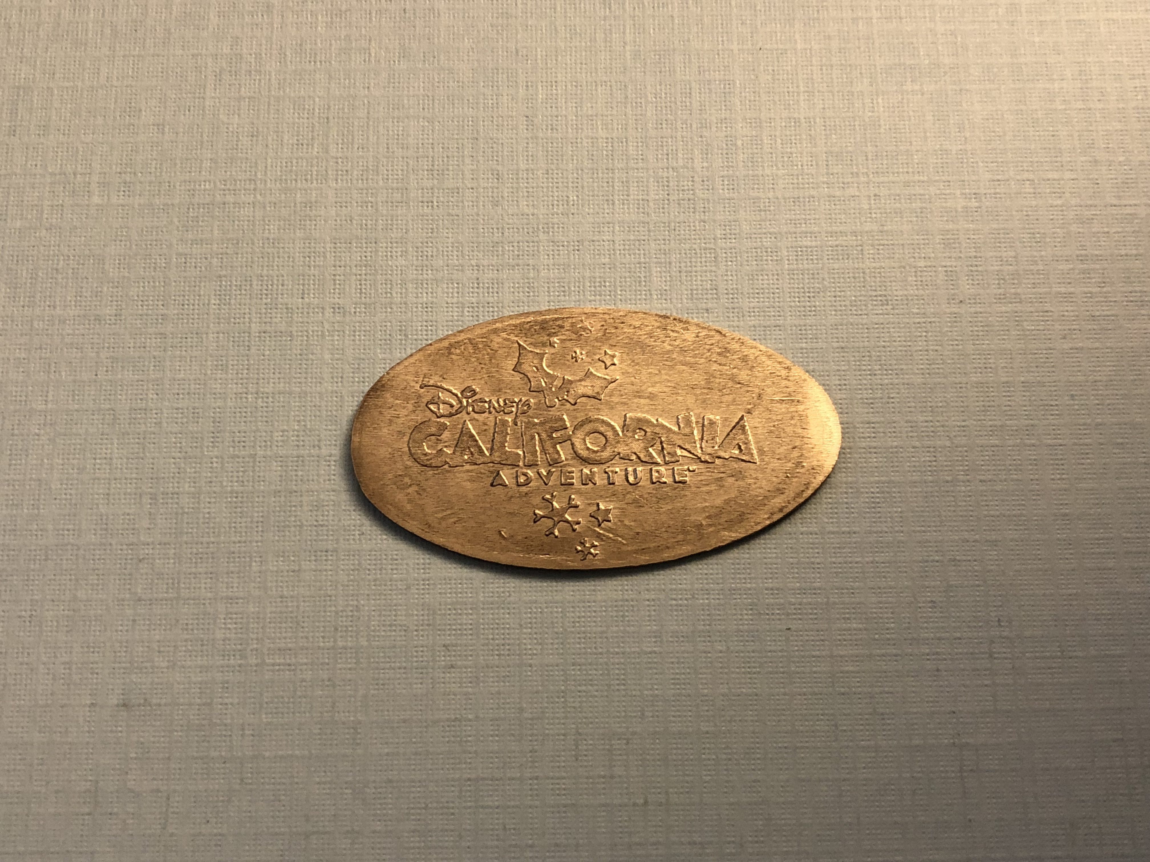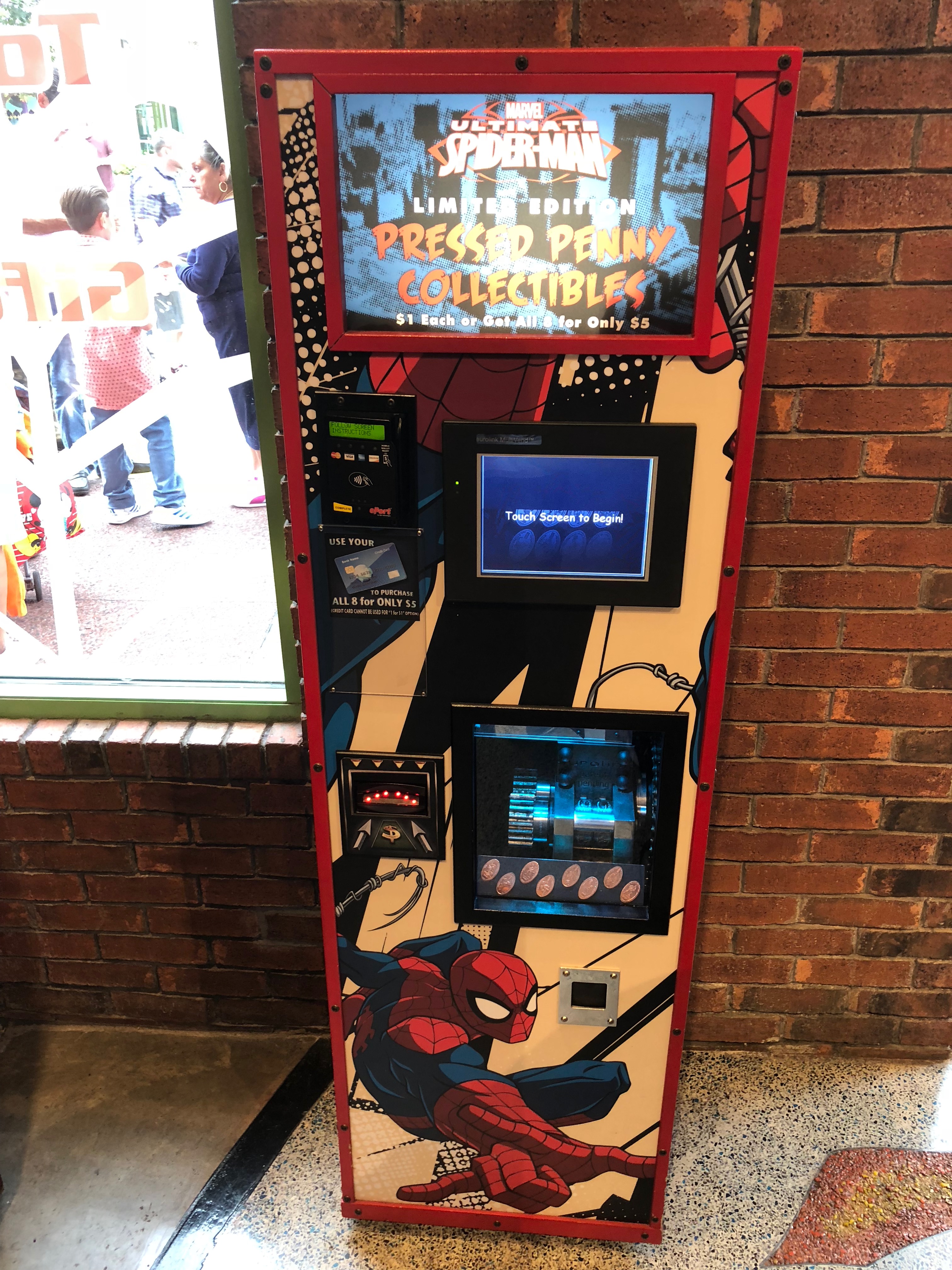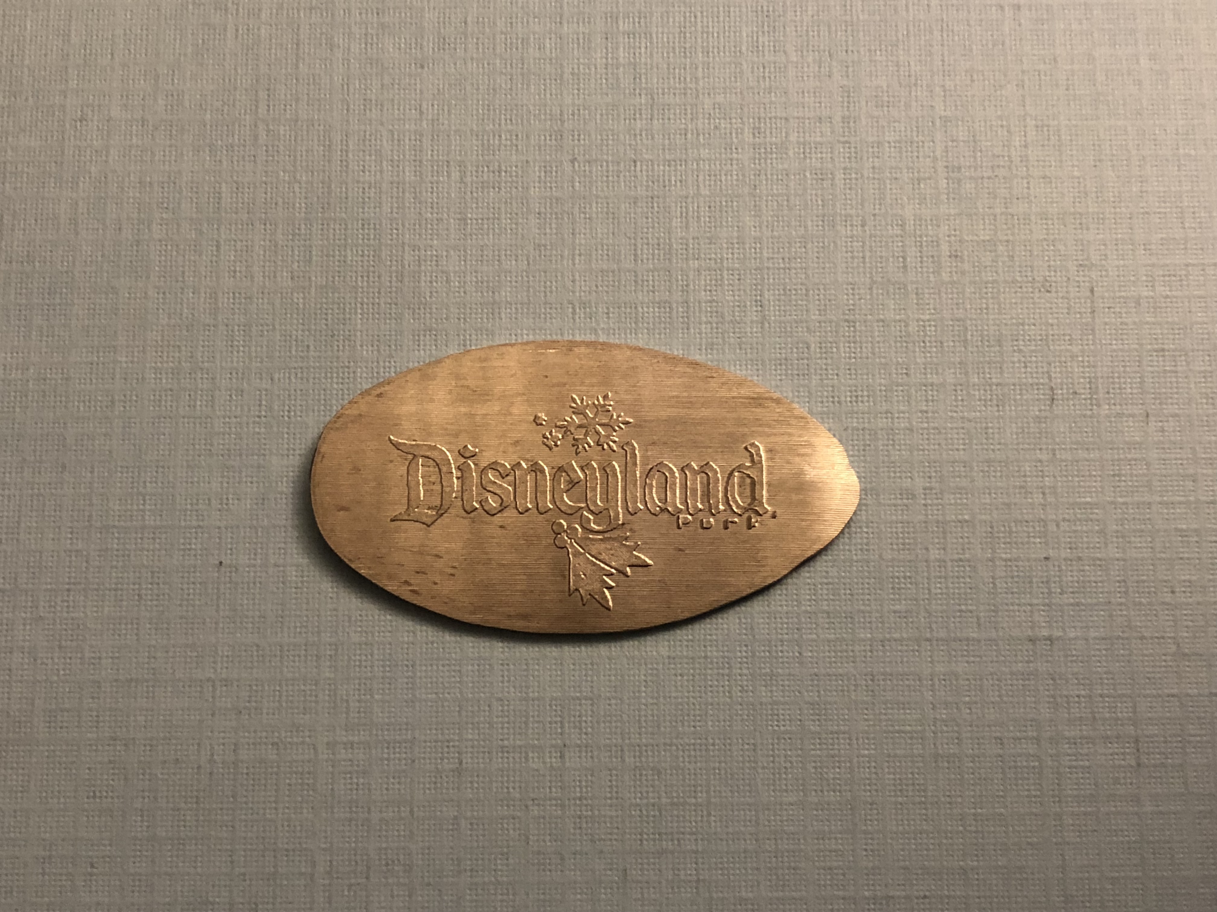 The set of pennies from this machine (when working) have designs of Grumpy Dwarf, Spaceman Mickey, and the Wicked Queen from Snow White.