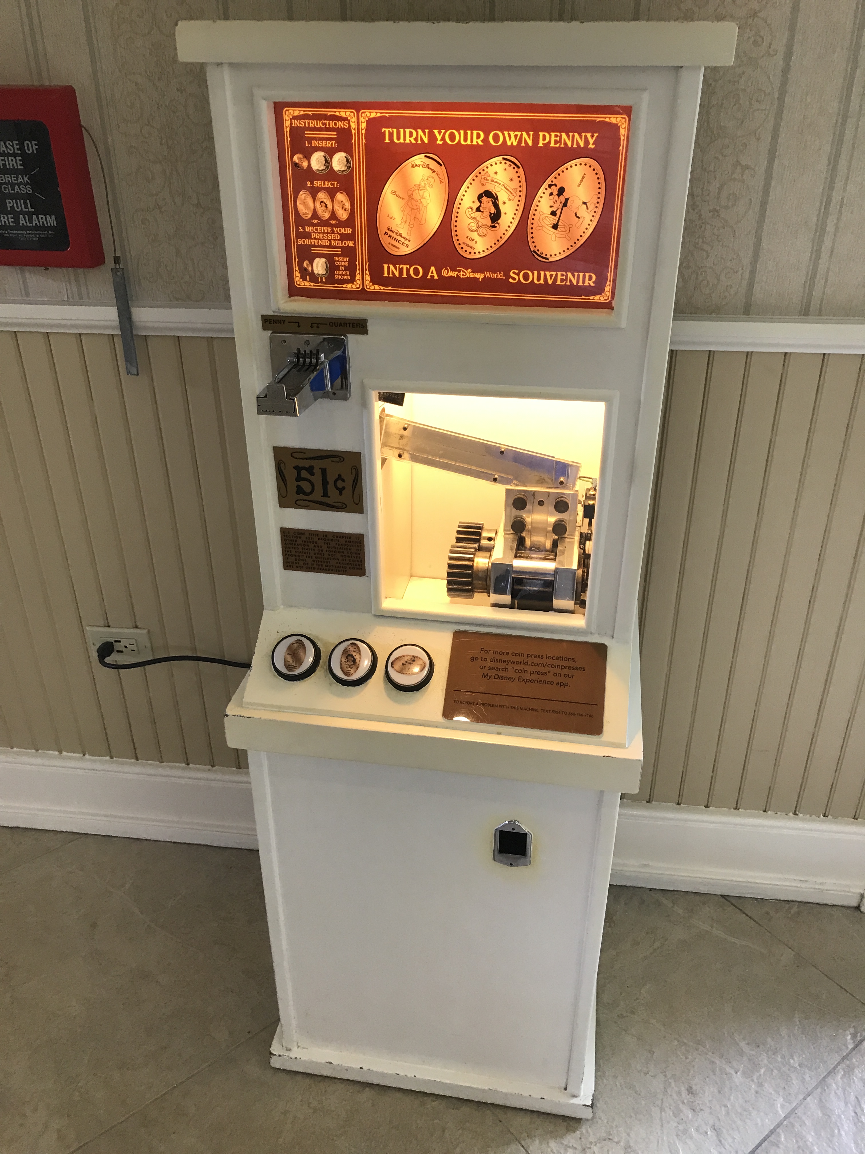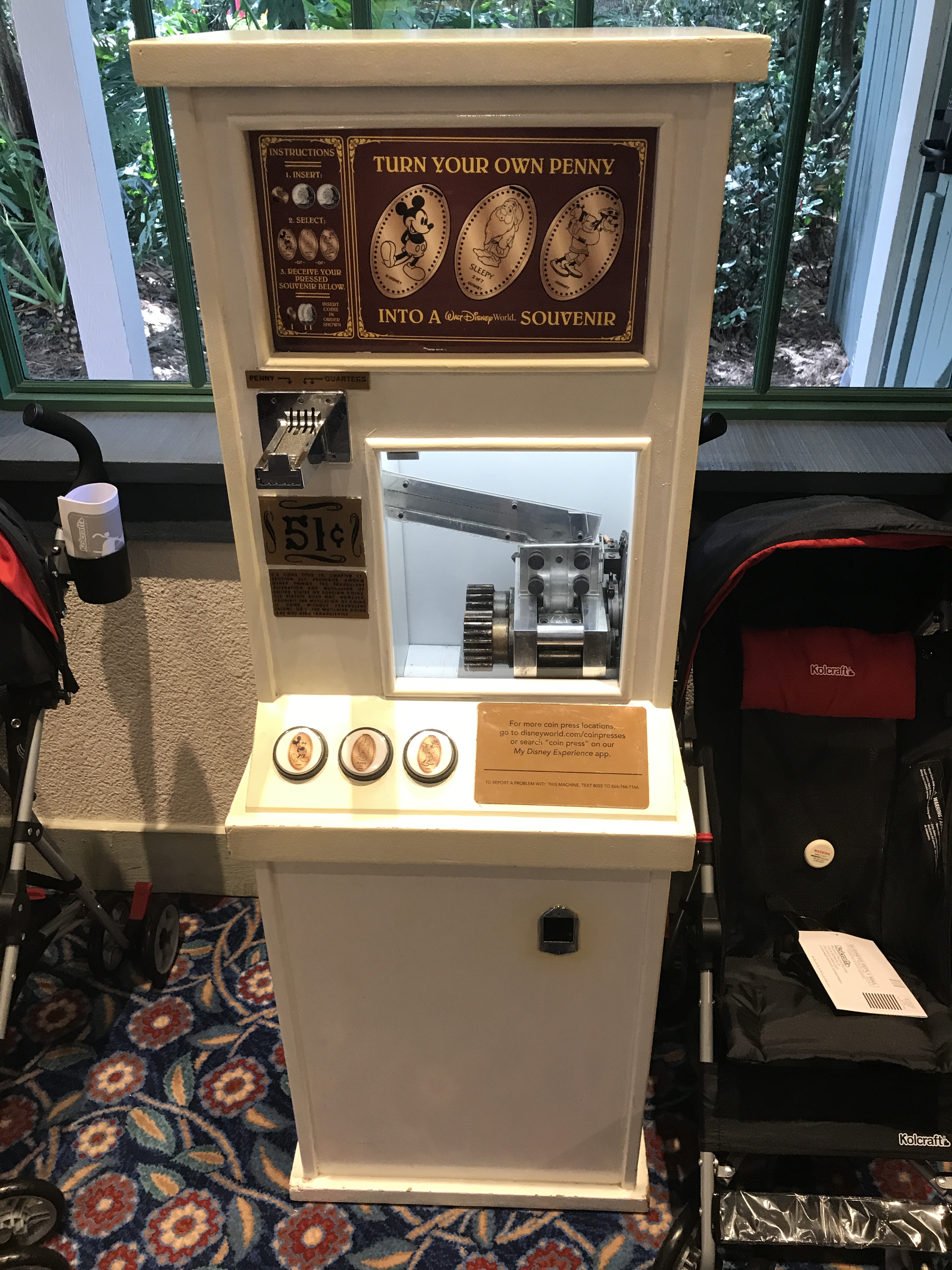 The large lobby and registration area really transform you into the deep south. The staff has that wonderful southern charm as well and as the Disney saying goes welcomes you home. Located in the registration area are the next two penny machines we came across.