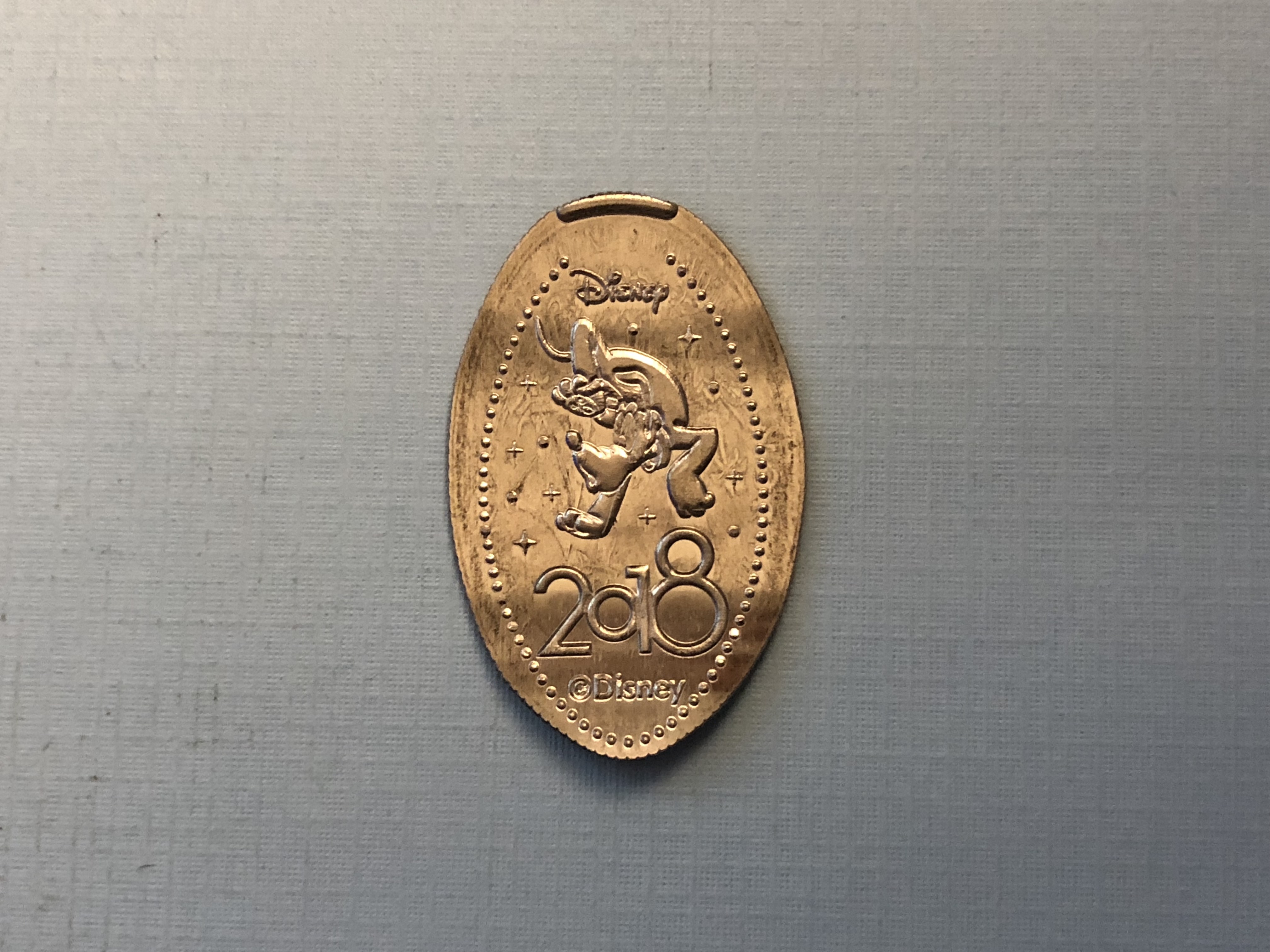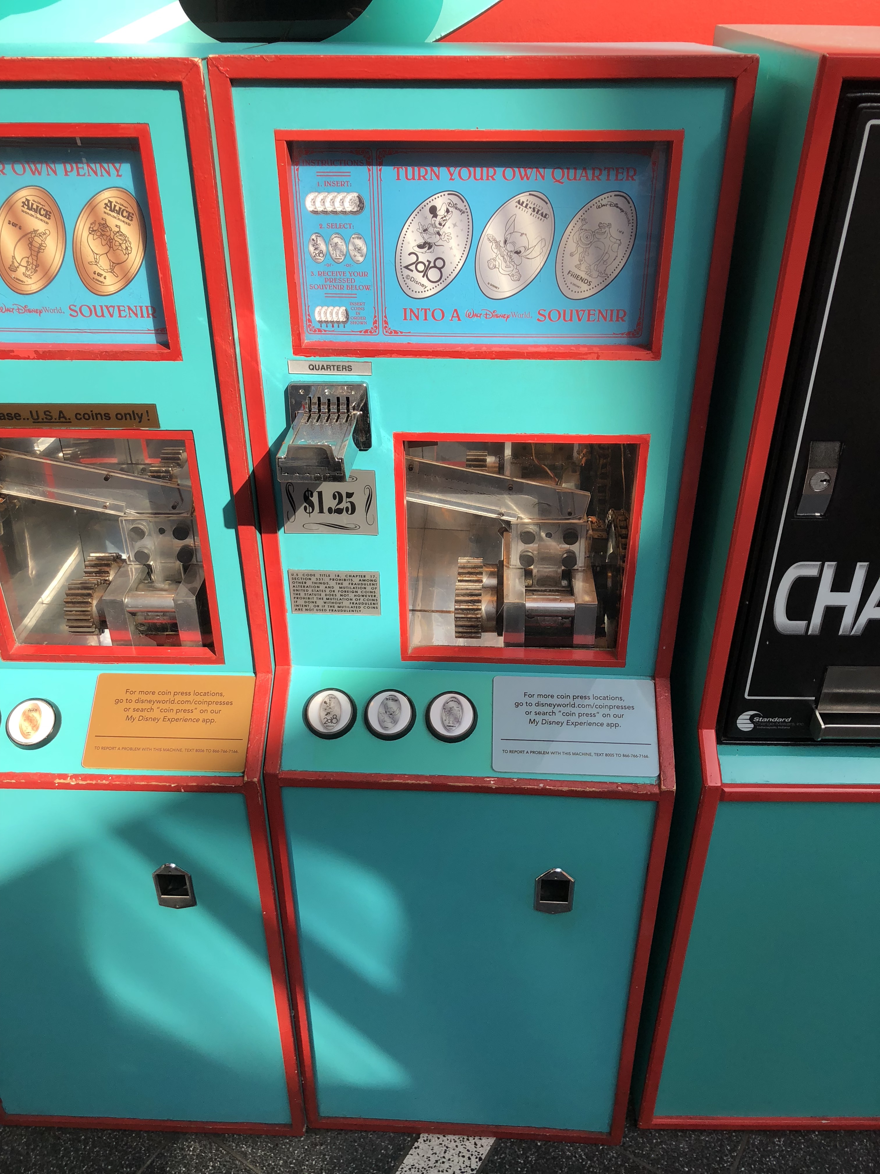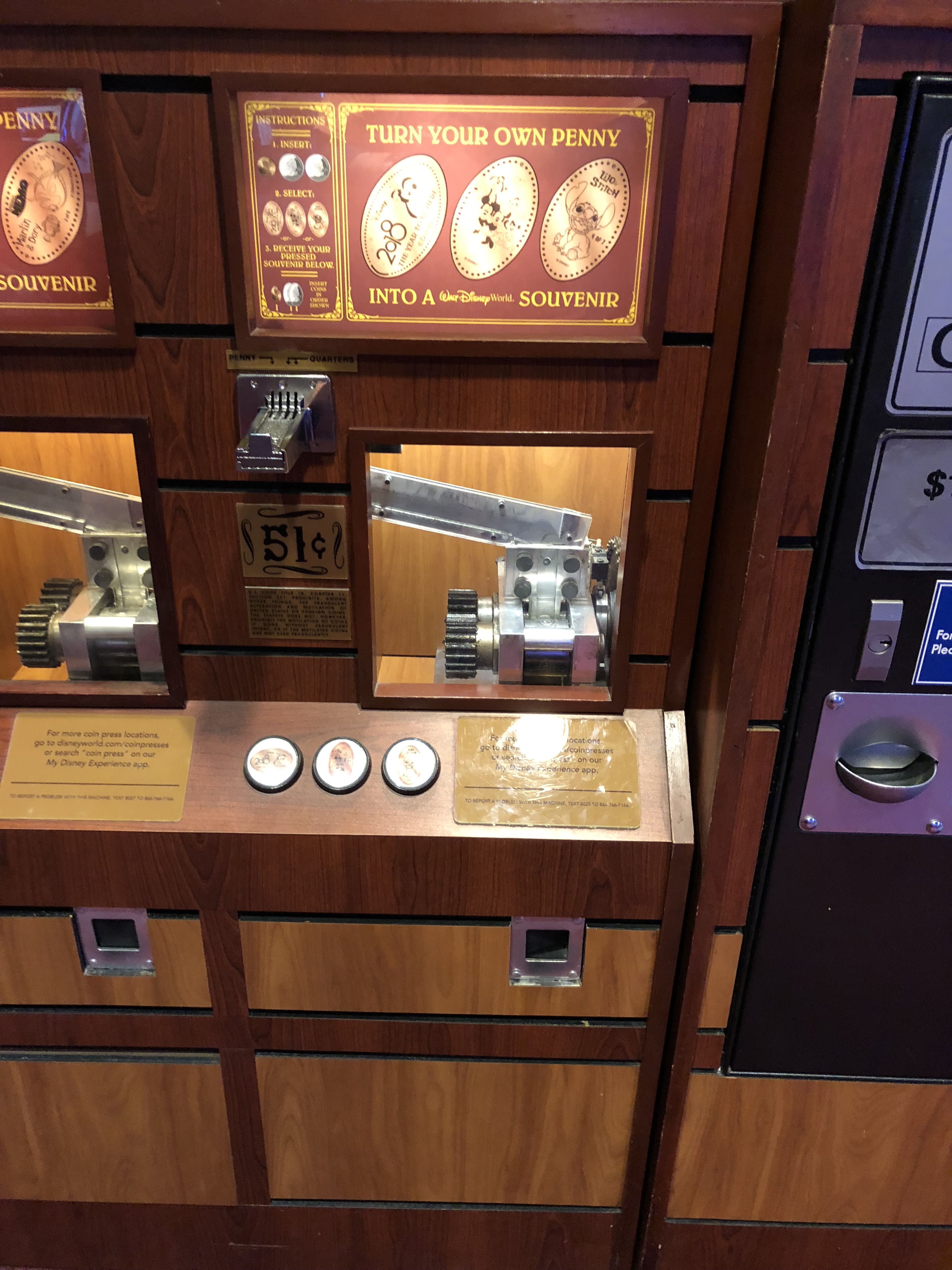 This machine had 2018 Donald Duck pressed on a quarter. Thankfully the next machine wasn’t too far away and just down the street in the All-Star Music resort.