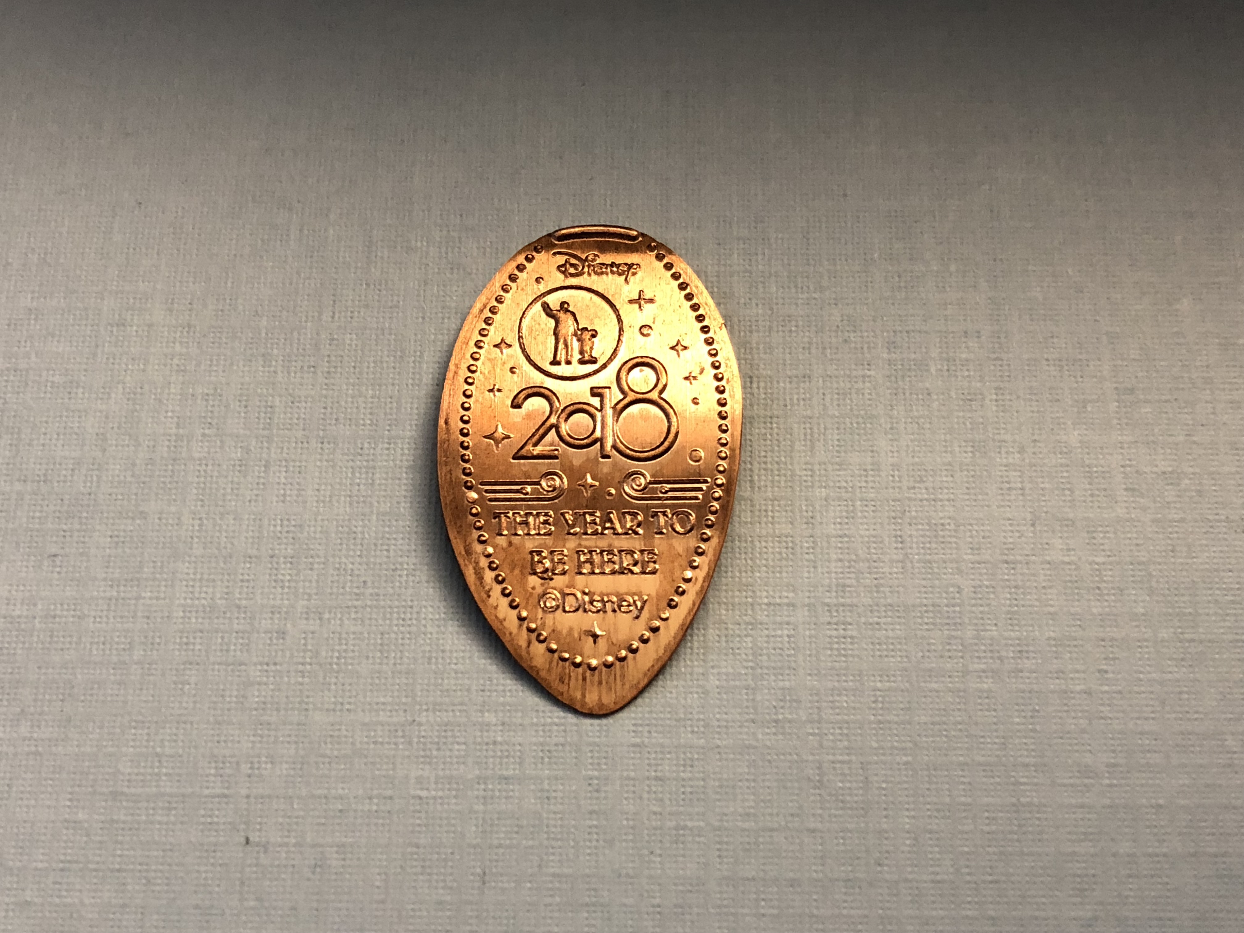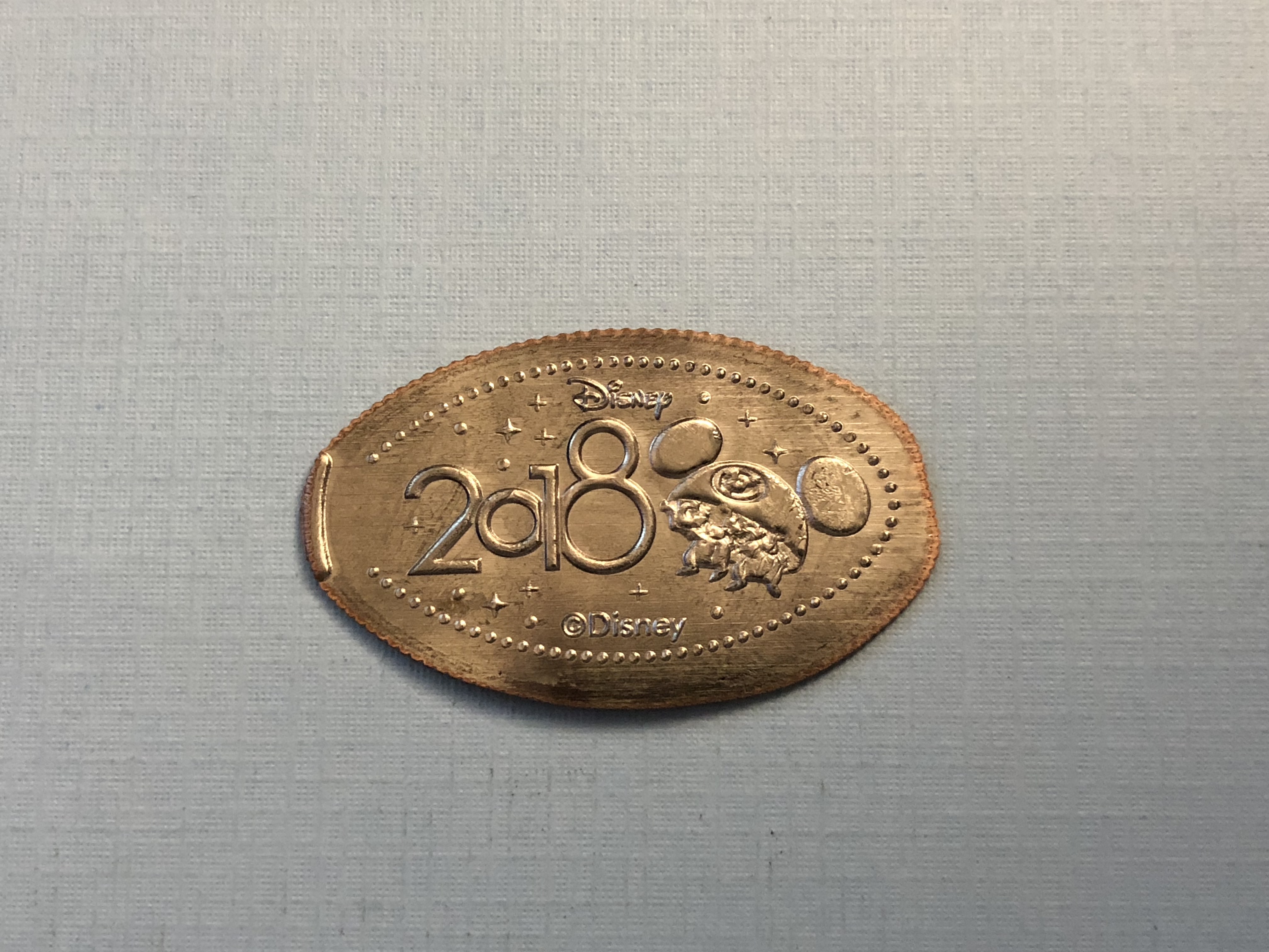 This one is probably my favorite this year. It has 2018 with the soon to be famous tag line for this year (I promise not to type it down again). But the big winner on this penny is the image of Walt and Mickey holding hands. This is based on the famous Partners statue that is a reminder to all how this all started.