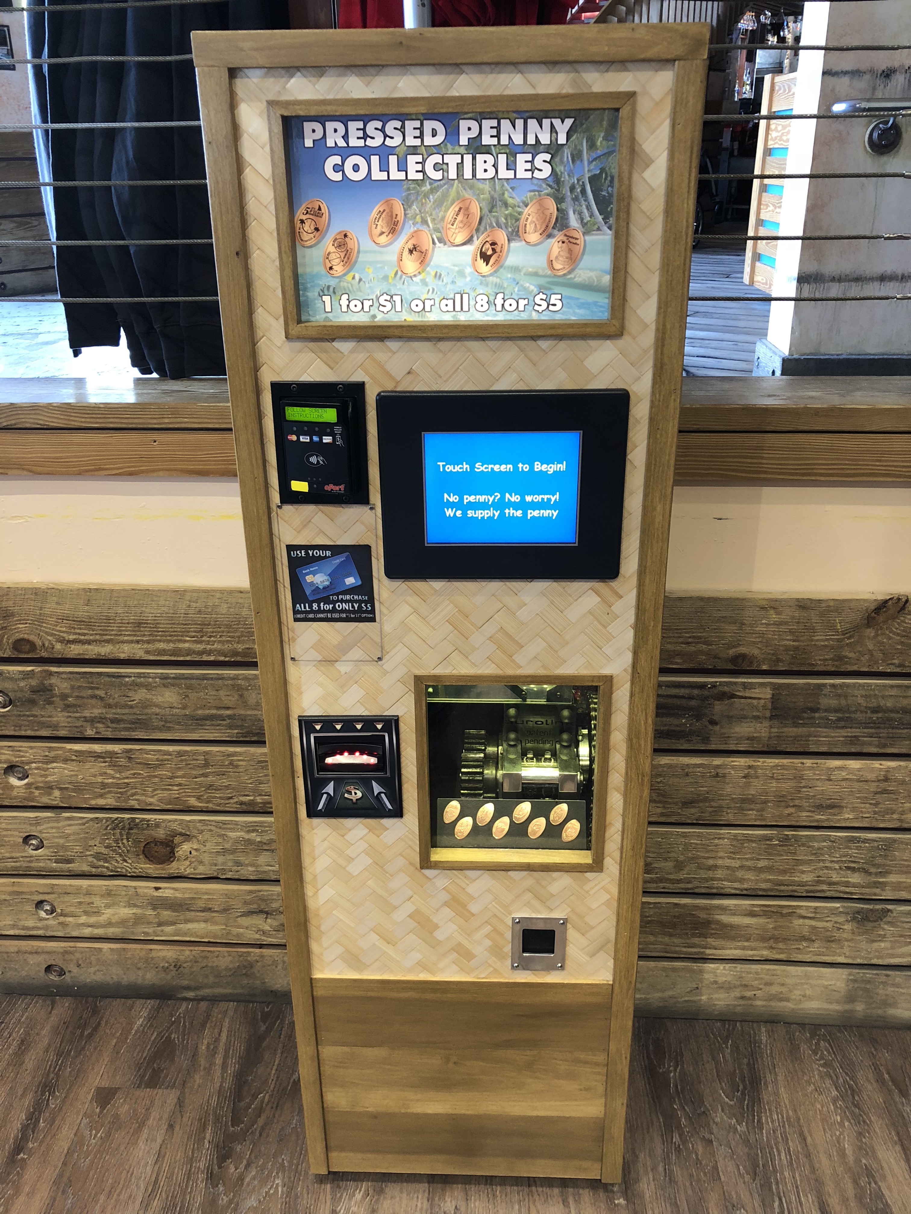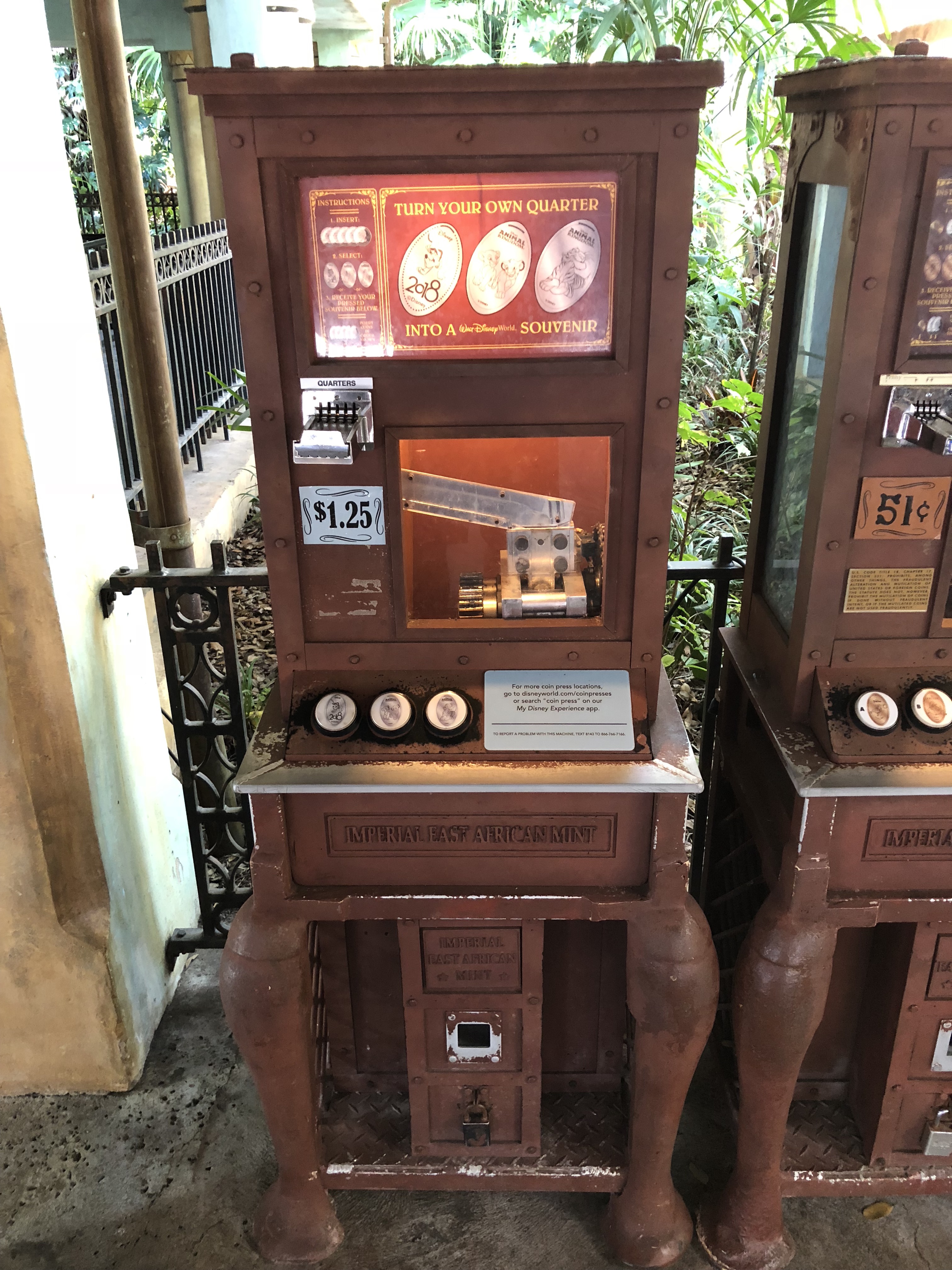 The second machine in the Animal Kingdom is at the Harambe Railroad Station platform. This train will take you to Rafiki’s Planet Watch but is not required to use the machine. This machine pressed a quarter of Pluto and the year 2018.