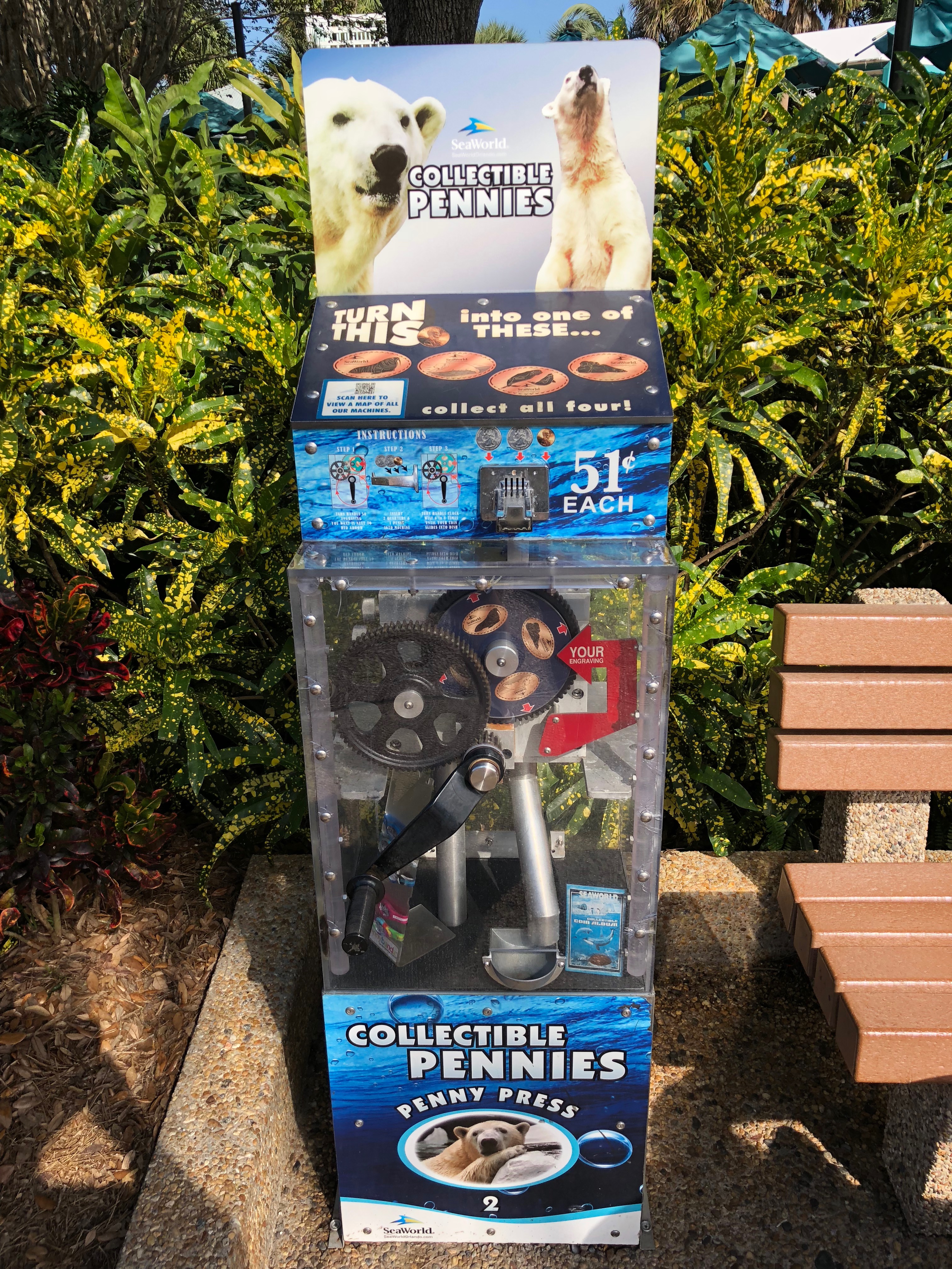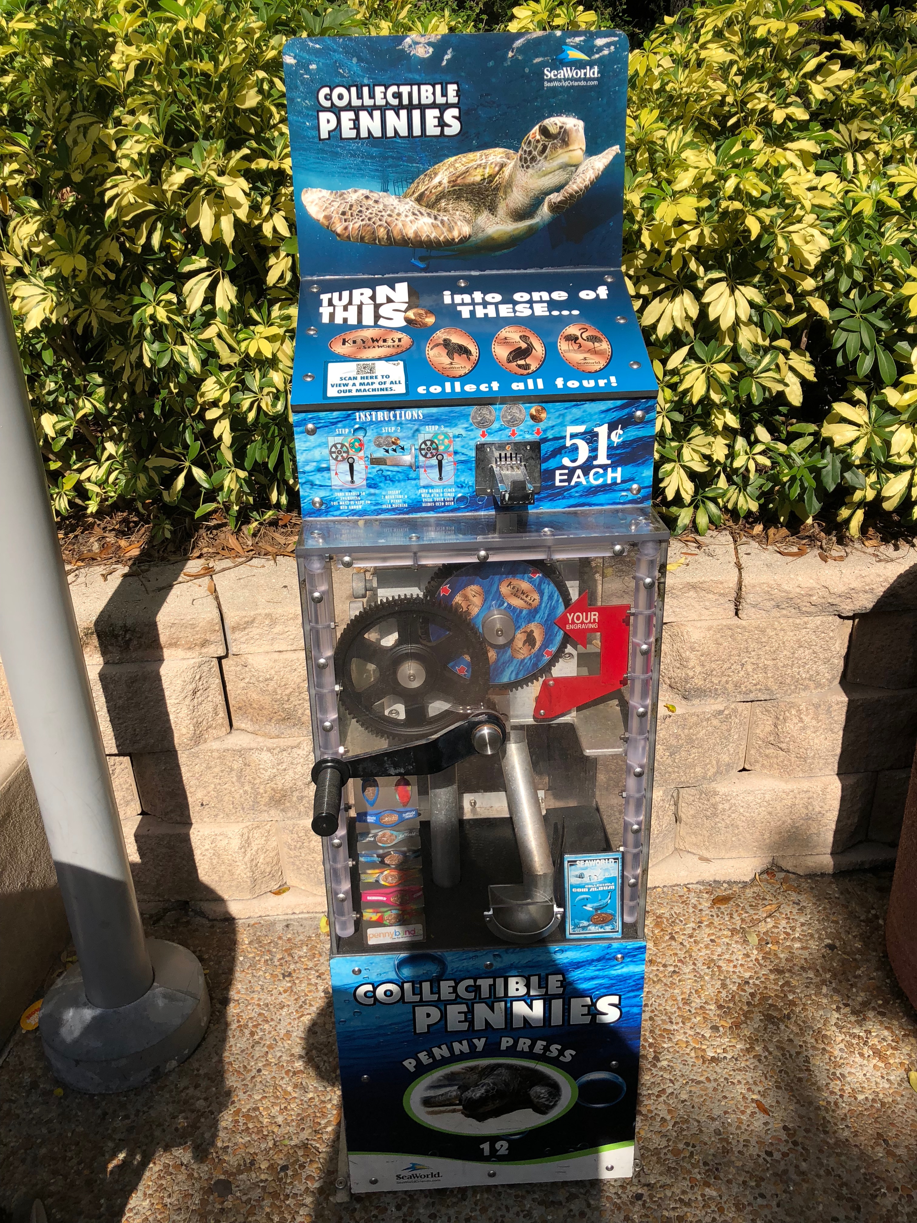 A couple of weeks after my first visit to SeaWorld I finally got some free time to go back and pick up where I left off. There were still quite a few penny machines here somewhere and I was determined to find them.