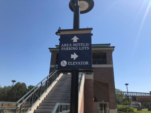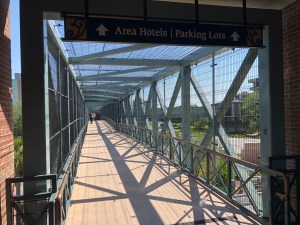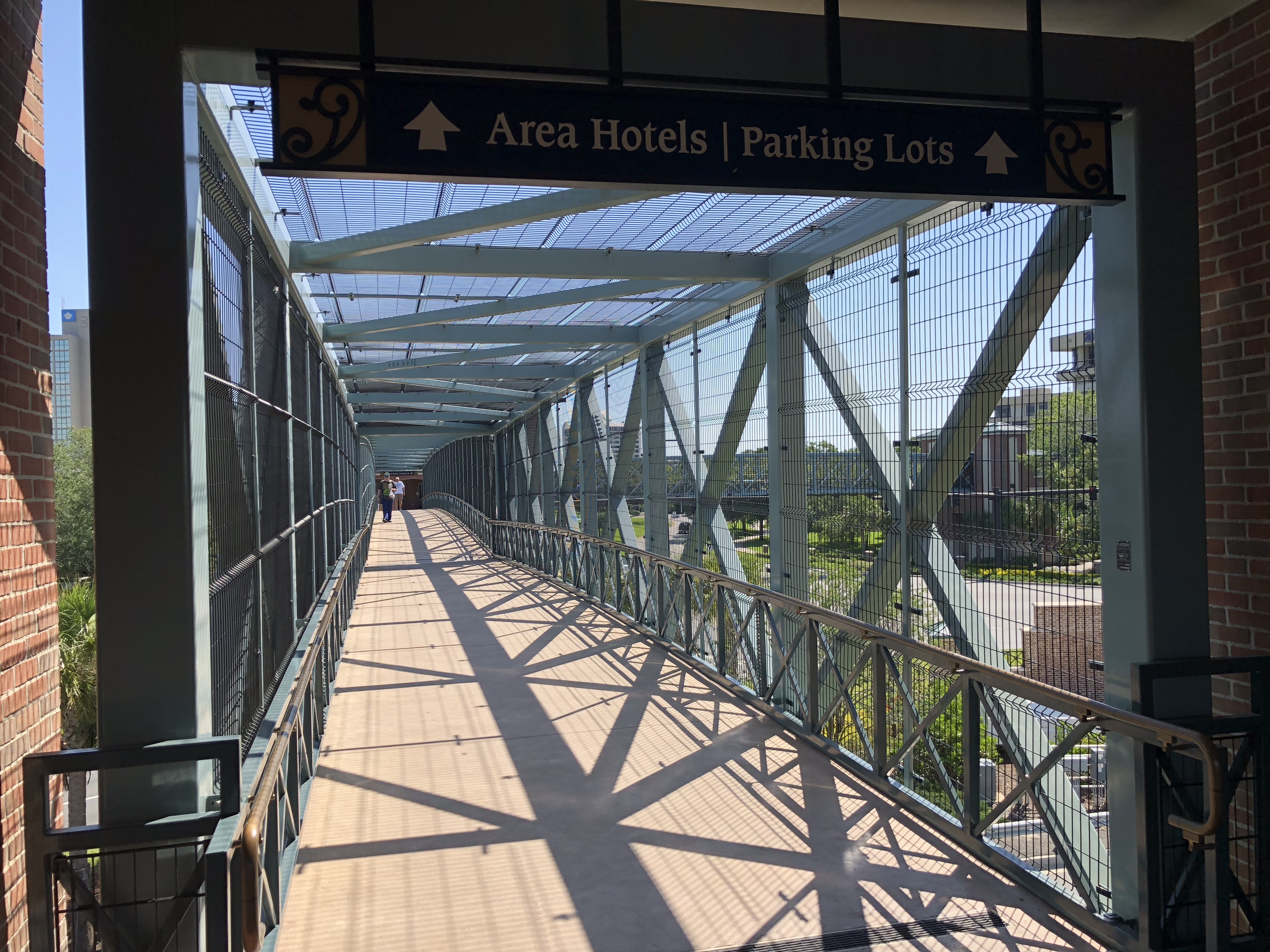 These walkways were actually pretty nice, and my daughter had a great time watching the cars pass by underneath our feet. Eventually we ended up on the far side of Hotel Plaza Boulevard and headed into the first hotel.