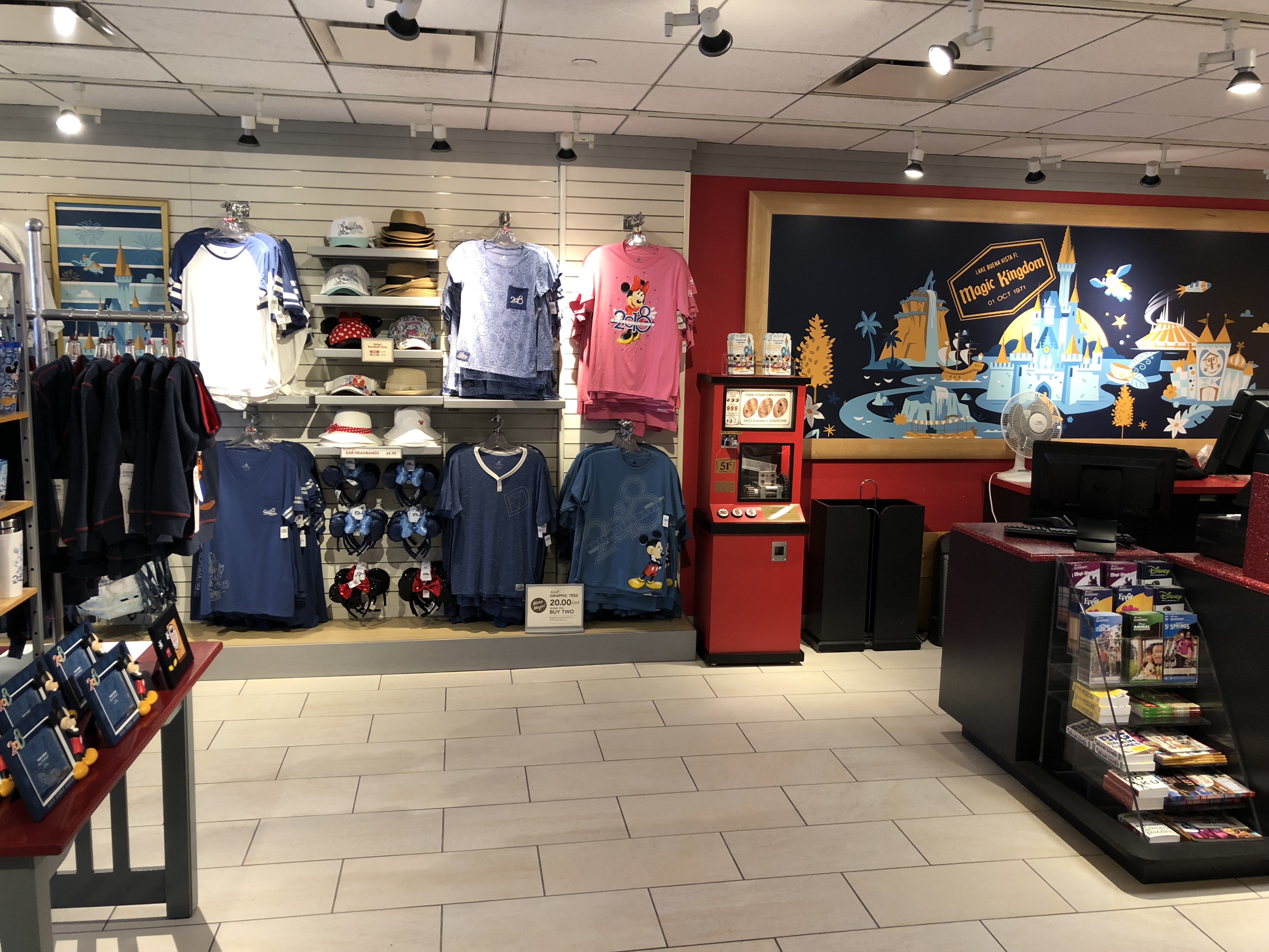 As I walked into the gift shop I noticed a large mural behind the check out area. I’m sure it was just an interchangeable piece of wallpaper but it was still fun to look at with the Magic Kingdom and it’s landmarks depicted in the image.