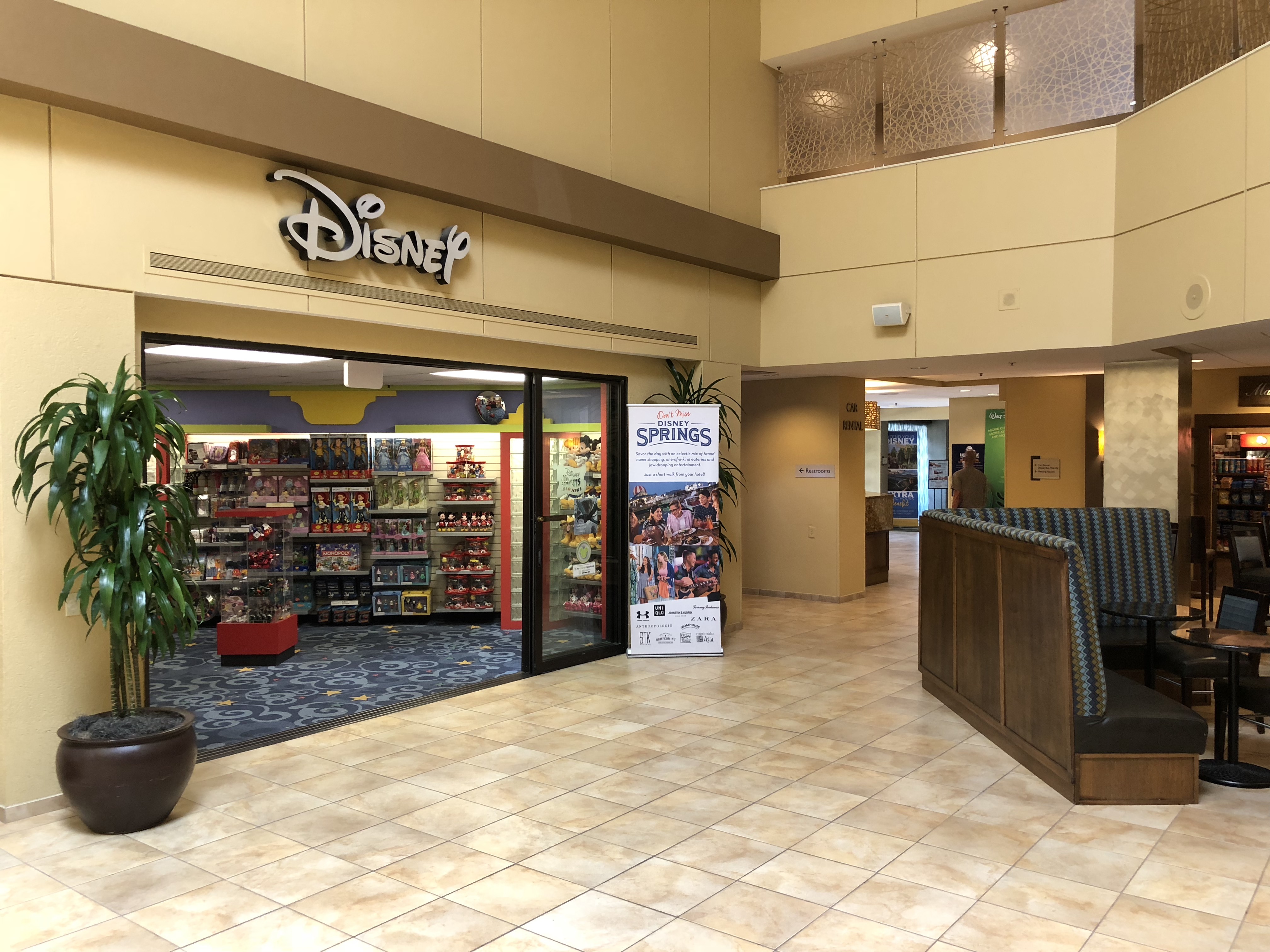 The Hilton Orlando Buena Vista was out first stop. Heading inside through the main lobby area we hung a right and down the hallway we saw the familiar Disney Store sign.