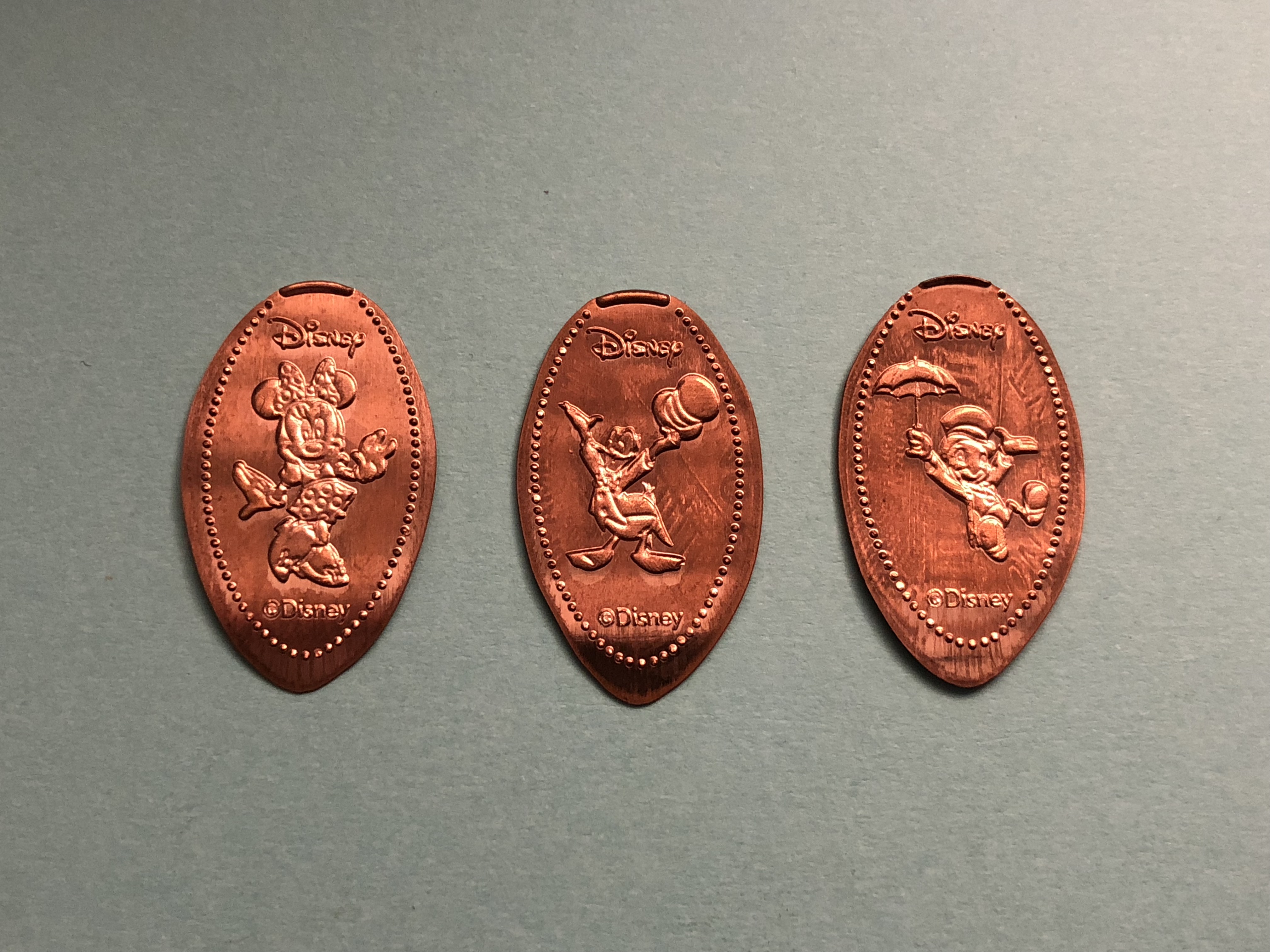While I used this machine to press the pennies the cast member in the store came by to talk. She mentioned the machine has just been brought in a few days prior. I asked if she knew whether all the “Good Neighbor” hotels were getting them and she wasn’t sure, but more on that in a bit. The designs in this machine were of Minnie Mouse, Donald in a Tuxedo, and Jiminy Cricket.
