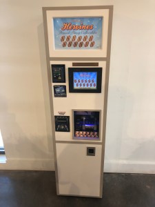 The machine was a four design hand crank model. It was mounted to a platform with wheels so it could be moved around easily. I would guess it’s just to store it inside when the restaurant is not open, but just be aware its location may change.