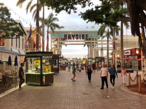 We had a nice view from our balcony of the harbor and if you looked closely between some of the towering skyline you could see the beach only a block away. Once we were settled into our room and unpacked it was about time to start thinking about dinner. I found online a place called the Bayside Marketplace that wasn’t too far away and seemed like it would have a nice selection of places to eat. We hopped in the car and headed over.