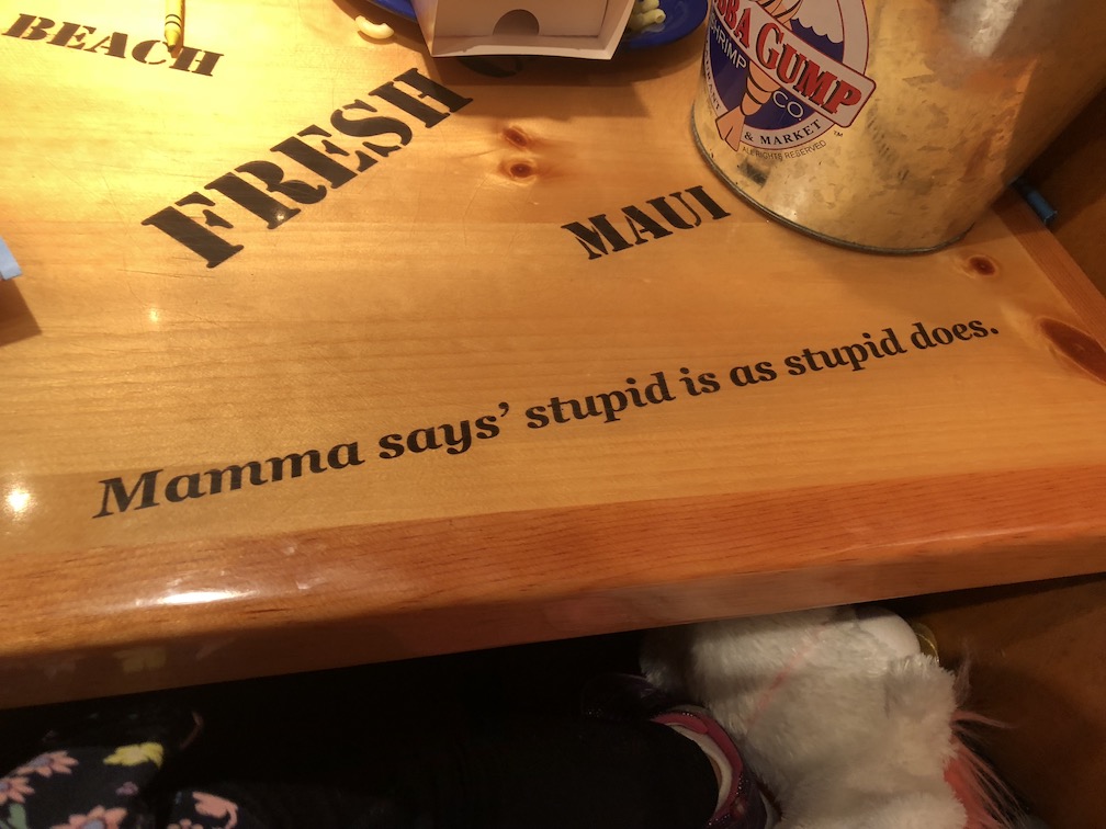 Even the table had some motivational quotes from the movie while you waited for your food. This restaurant can get loud as the night-time crowd arrives, but the food was good with as you can guess plenty of Shrimp dishes to choose from. After dinner we did walk around a bit, but I could tell everyone was getting tired. We headed back towards our hotel but took a quick pit stop over to the beach.