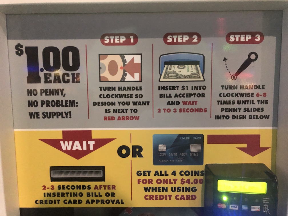 This change has a lot of collectors not too happy, but not necessarily just because of the higher price. This is something that I feel was inevitable and am kind of surprised it didn’t happen earlier. From what I have been hearing from collectors they are more upset about the machine supplying the penny. We have talked in the past about the preference for a lot of pressed penny collectors to use pre-1982 pennies due to their higher copper content. This usually results in much better final pressings. But as we have found with the new larger format machines (8 or 12 design machines) that already supply new shiny zinc (copper coated) penny. The jury is still out on how well these pressed pennies will hold up over time.