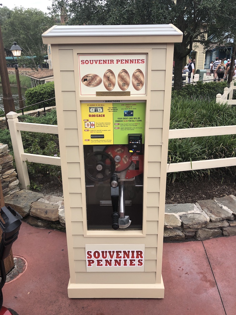 The next machine was in Storybook Circus (where the classic Dumbo ride is located) in the Big Top Souvenir gift shop. Located all the way in the back this machine can be easily missed. The four penny designs are the same as before it’s updated, the only change is to the price and payment options.