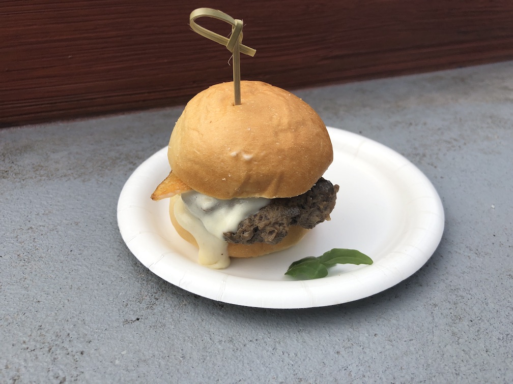 There were a few items here that I wanted to try, but a few were the same from last year. We were trying to make a push for some new items this year. First, we tried the Steakhouse Blended Burger. It was a blended Beef and Mushroom slider with brie cheese fondue, arugula, and a truffle and blue cheese potato chip on a brioche bun.