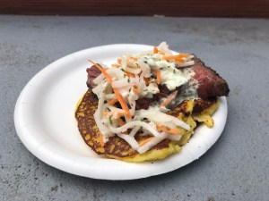 The second item we got here was the Charred Chimichurri skirt steak on a smoked corn cake with pickled vegetable slaw and cilantro aioli. This was definitely our favorite item the entire day, even my 7-year-old daughter loved this one.