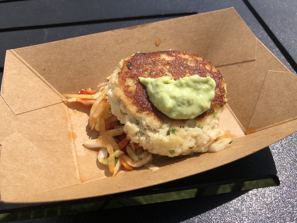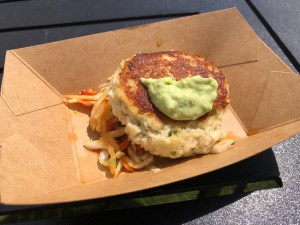 It was nice to see an actual grill out behind the booth. Most of the booths have the components of the food items made in a kitchen somewhere else in the park and then transported by cart to the booths to be constructed. That can make for a less than “fresh” feeling with the food items, but with the grills going strong I was hoping that wouldn’t be the case here.