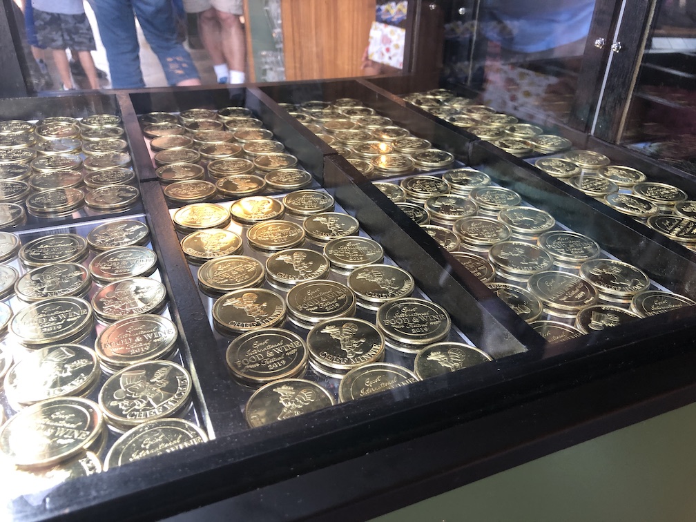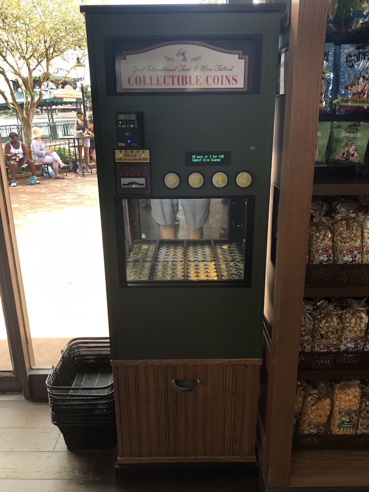 As my family looked around picking out t-shirts, Christmas tree ornaments and maybe a bottle of wine or two, I was drawn to an area on the opposite side of the store. Earlier this year during the Flower and Garden festival they had released specially designed coins that you can read out here. Fellow collectors had been wondering since then if Disney would continue this with other festivals and sure enough, here it was for the Food and Wine.
