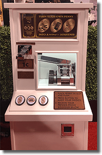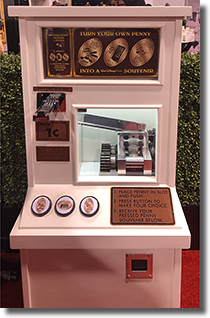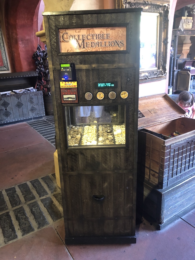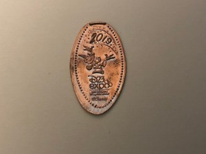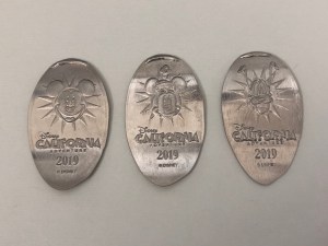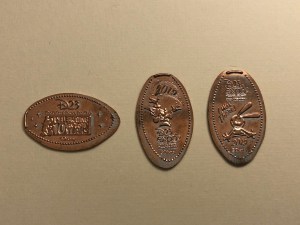 There are quite a few coins on display in the center second of the machine. Other machines around Disney have coins in here spinning on little risers but this machine didn’t have that and instead was just laying flat.
