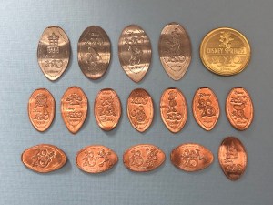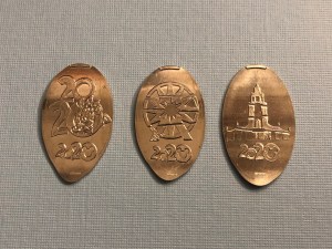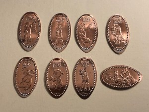 This year there are only 4 pressed quarter designs. It does seem like these pressed quarter machines are slowly being removed as quite a few of them were taken away last year and have not returned. There were 12 pennies and 1 collectible medallion, making for a grand total of 17 dated coins.