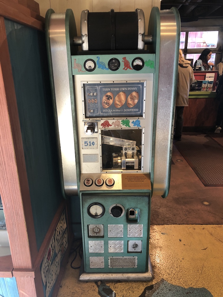 With Hollywood Studios completed we headed over to the Animal Kingdom. Back in Dinoland USA at the Chester and Hester Dino Treasures gift shop is where the penny machine is located.