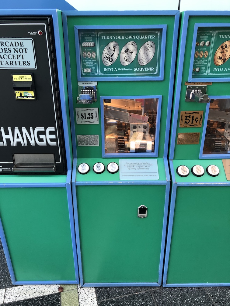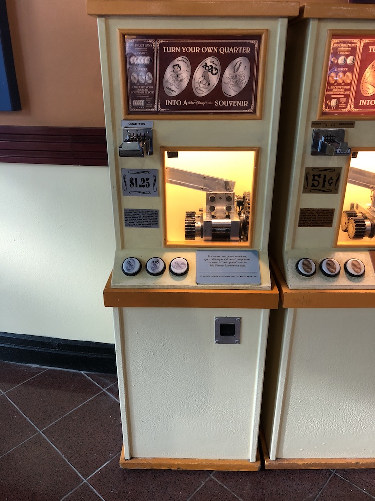 These machines are found in the World Premier Food Court and can be a busy place if you visit during common mealtime. The pressed quarter design is of Donald Duck.