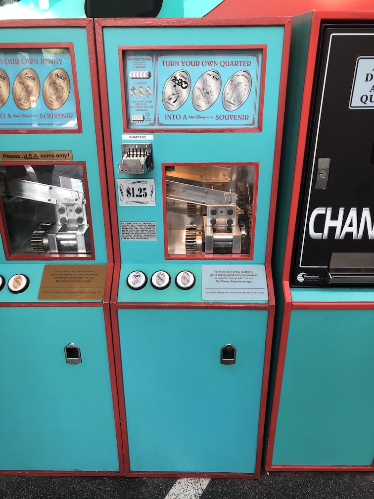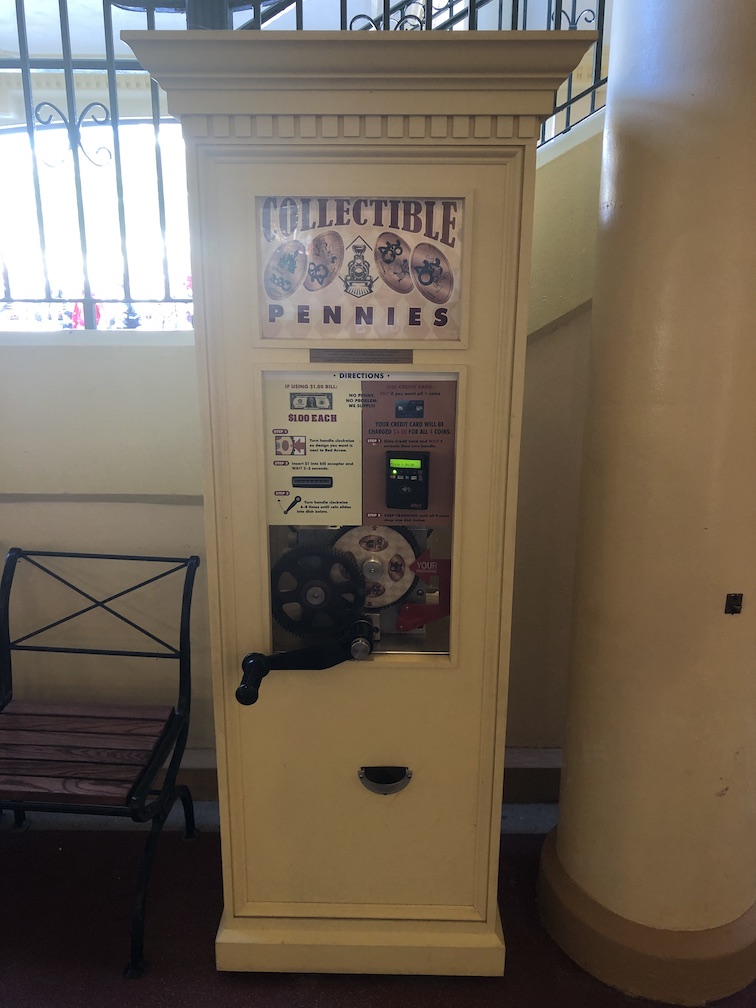 In previous years the Main Street Emporium had a dated penny and quarter, but not in 2020. This year those old designs were replaced with previously retired designs from other locations. But I did find another machine at the Main Street Train Station.