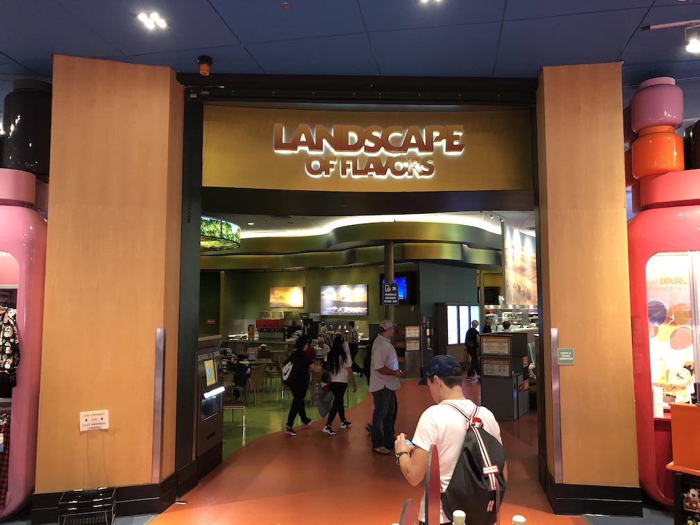 This resort has one of my favorite food courts called the Landscape of Flavors. When you first walk in there is a pretty big gift shop, then the food court is just beyond that. The penny machines are just past the gift shop.