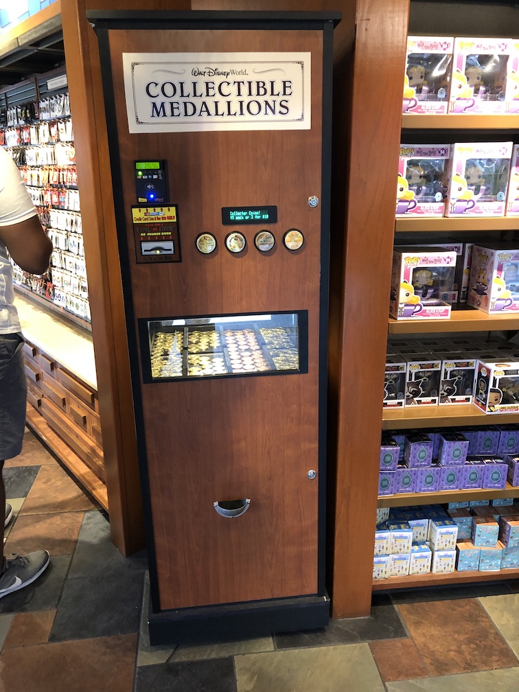 In the Pin Traders store, there is a collectible medallion machine. This has moved around a bit over the last year, but this seems to be it’s new “permanent” location. There was a 2019 design here and it has been replaced with a new 2020 medallion.