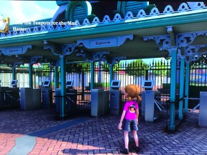 We found ourselves in the Pantopia section of the park which was very colorful and had some interesting looking buildings. This is actually where we had stopped for some lunch at a food court style restaurant with different stations depending on what you were in the mood for. They had Italian, American, Asian and Tex-Med which was a nice wide array of options. But it was extremely busy inside and was hard to find a place to sit once we have our food. After lunch, we explored this area a bit more, and there are quite a few rides for kids including a Carousel.