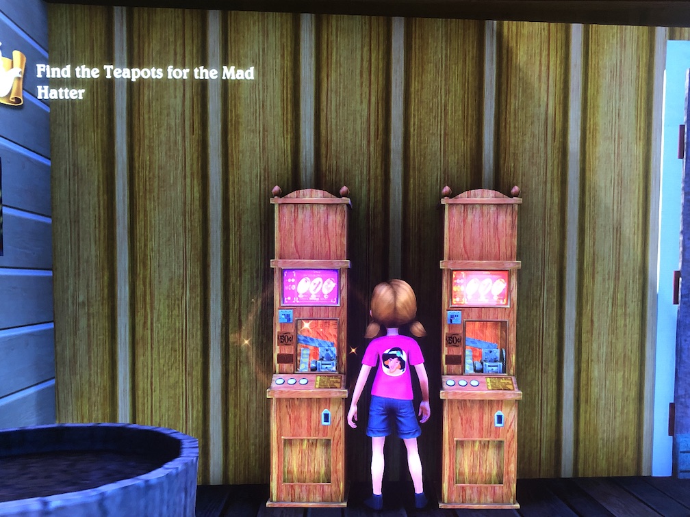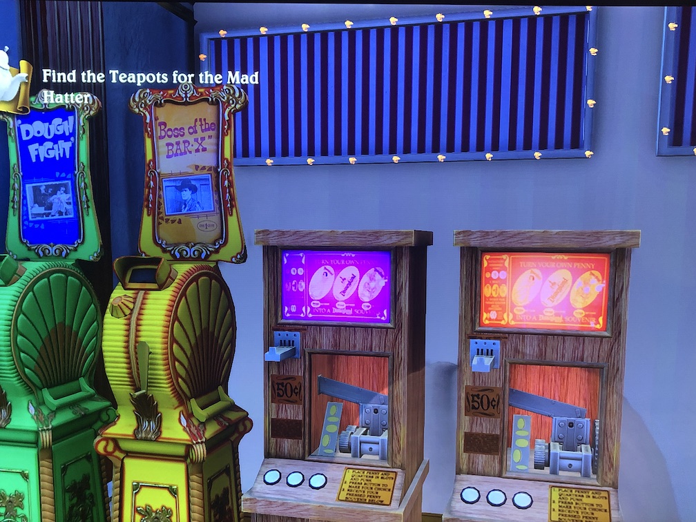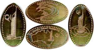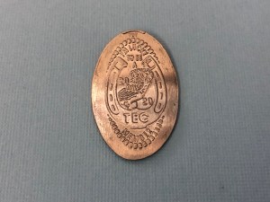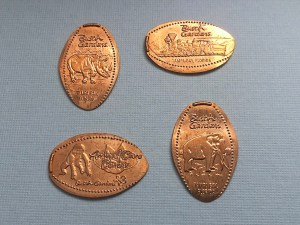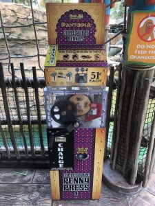 The first machine I came across had Pantopia listed on its marquee so I’m guessing these machines tend to move around periodically. The penny designs for this machine were fun with images of two Gorillas, a Giraffe, the Falcon’s Fury ride, and a couple Elephants.