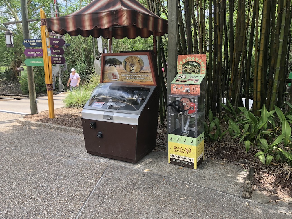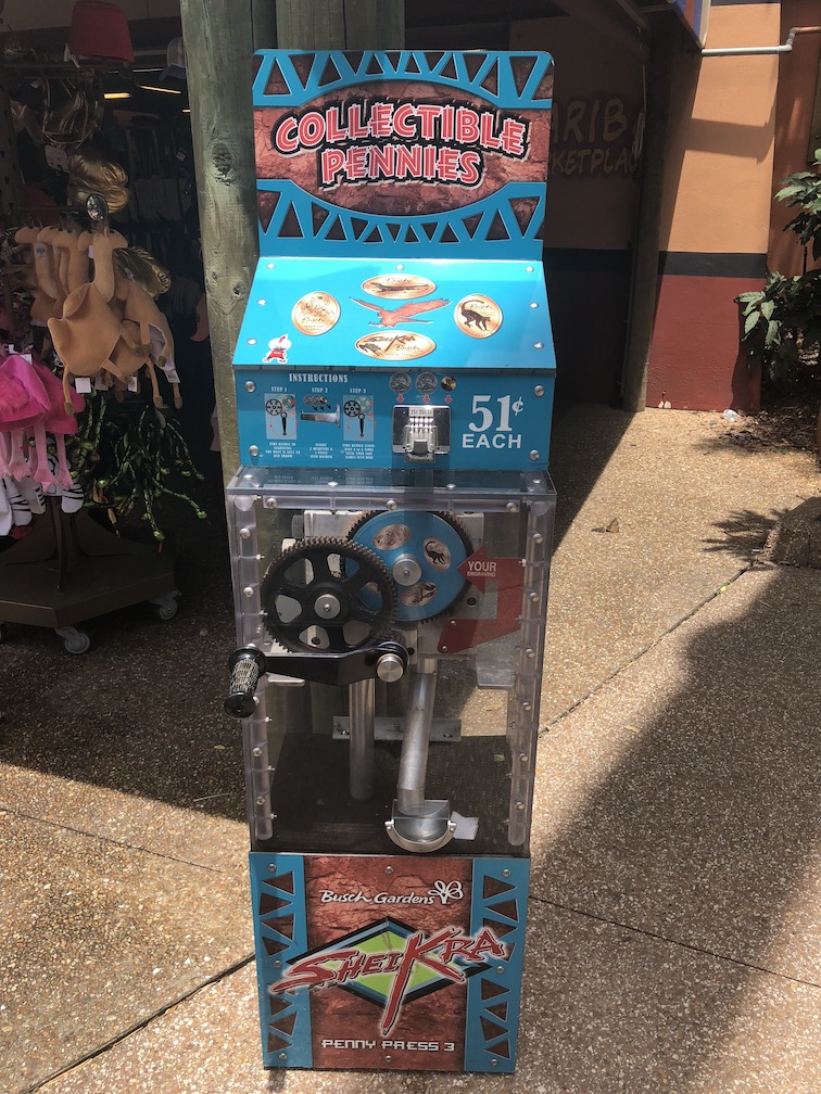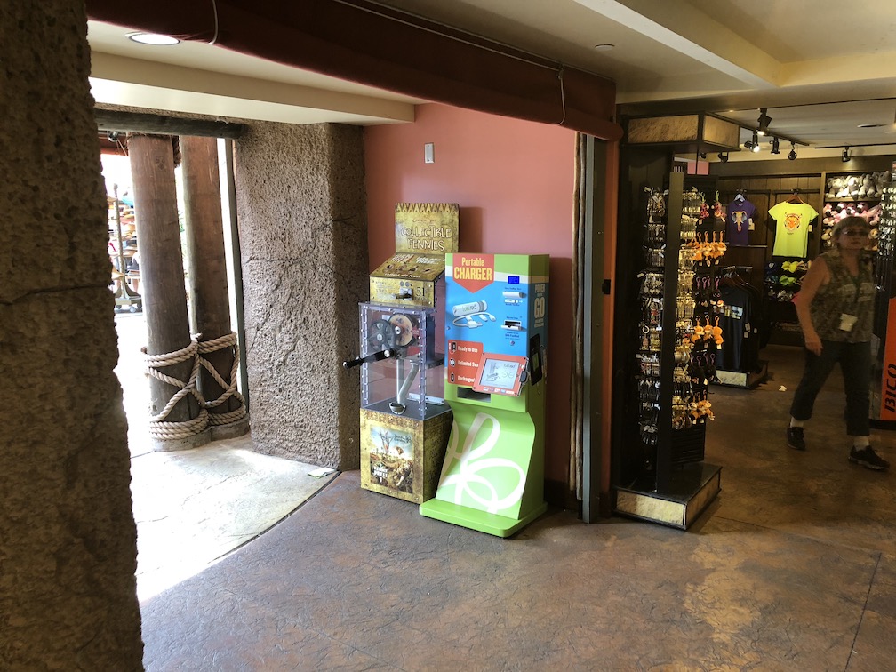 Not too far away from the entrance to SheiKra is a gift shop called the Kariba Marketplace. Part of this store is inside, and part is outside under a covered canopy and that is where you will find another penny machine.
