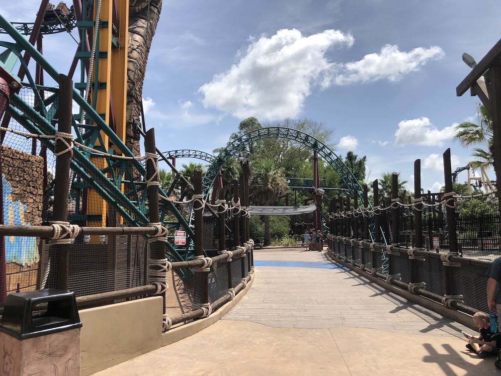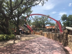 This area had quite a bit going on as well, with a Skyride station, the Stanley Falls Flume ride (another one you get quite soaked on), and the SkeiKra coaster. Be careful around this part of the coaster pictured above as they have some nice benches and shaded areas but you will notice the ground is pretty slick. This part of the coaster goes through a pond of water and sprays it up into the air behind it as it zooms by. Of course, your kids will love it, and I did find it a bit humorous to see the adults quickly running for cover when they realized what was about to happen.