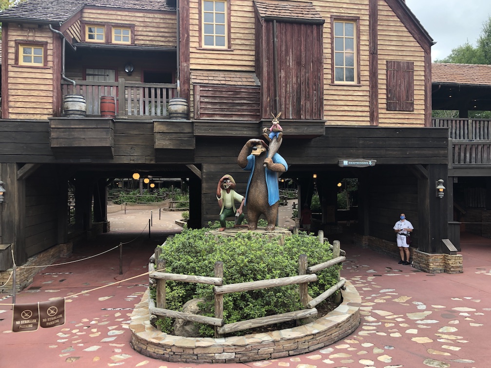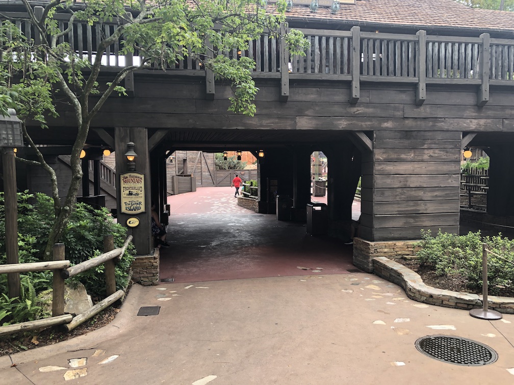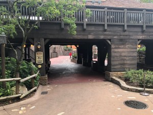 But that’s okay since the place we are actually heading is not up to the railroad platform. Instead, you walk just to the right of Splash Mountain underneath the train station.