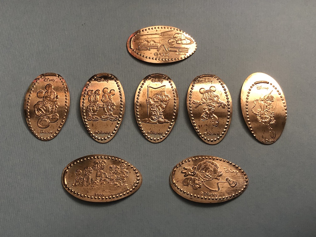 Here is a look at the new set of pressed pennies from this machine. Now if you have been collecting Walt Disney World pressed pennies you may be like me and at a glad recognized these designs. After I had pressed this set I was pretty sure these were previously retired designs that were just brought back. But once I got home I took a closer look to compare these with the older designs I remembered.