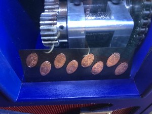 As you can see from the image above the machine has returned but is noticeably different. For one it is now a 4 design manual press machine. It has also been updated to the new $1 per penny price point, and the machine supplies a shiny new zinc penny.