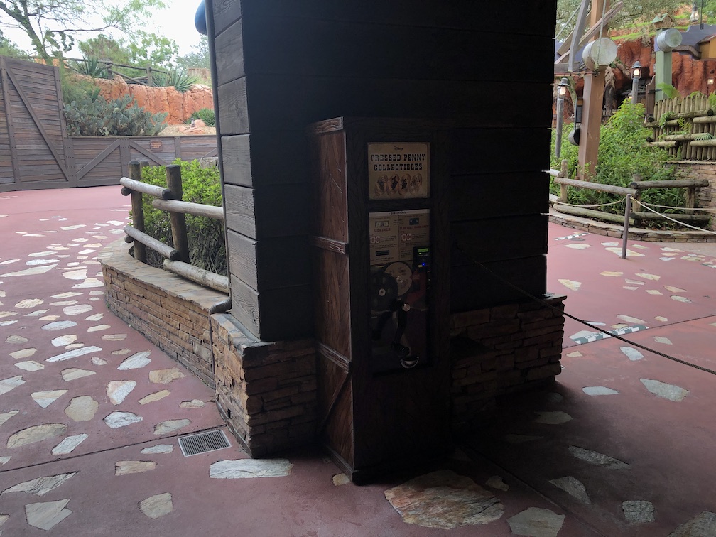 If you decide that you would rather take a trip down the Briar Patch by riding Splash Mountain first that’s no problem. Once you exit the ride you will have to walk underneath the train station as well to get back to the park. Which is perfect since this is where you will find the new penny machine.