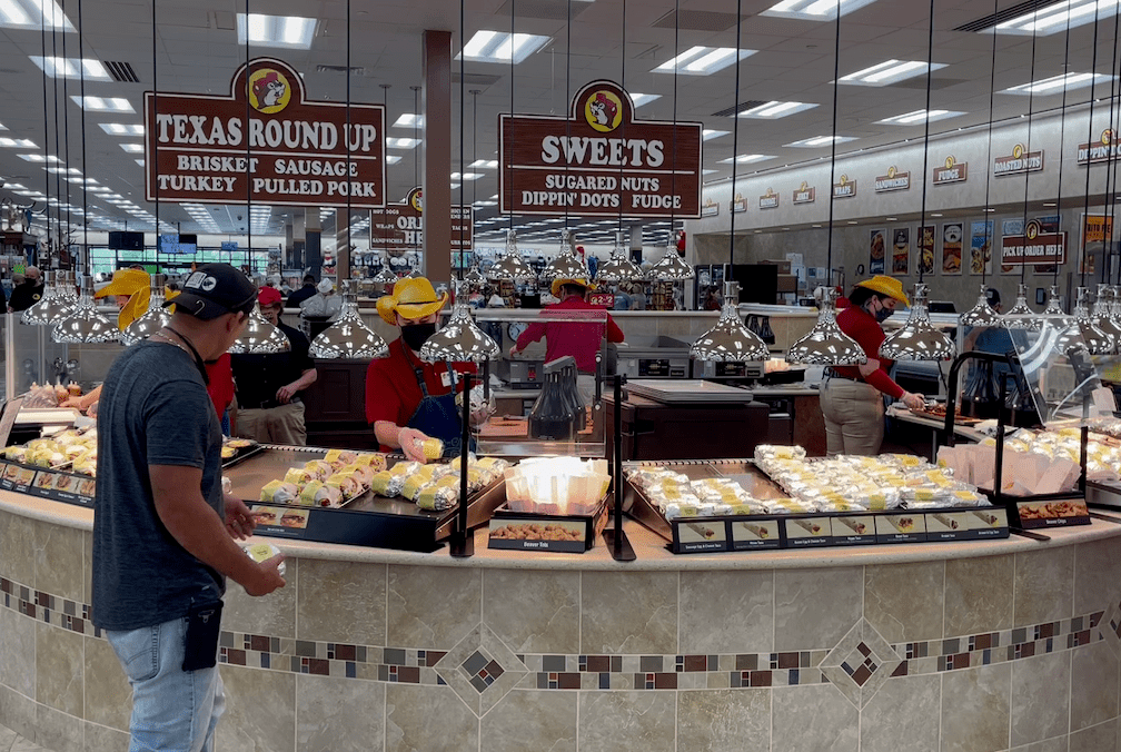 The smell of food was intoxicating and I quickly found myself gravitating towards this area of the store. In the middle is where they have an area with pre-made sandwiches, tacos, burritos, beaver chips, and even sausage on a stick. I witnessed a fresh brisket being placed on the cutting board while I was examining all the options and the staff broke out in a loud chant about the “brisket on the board”.