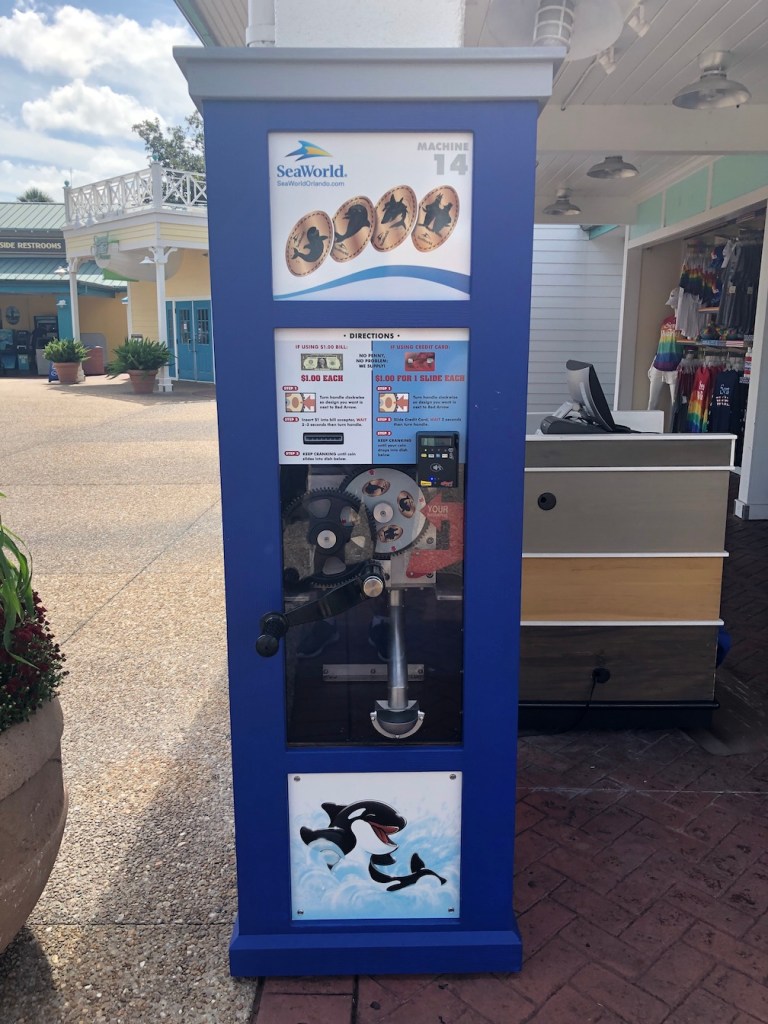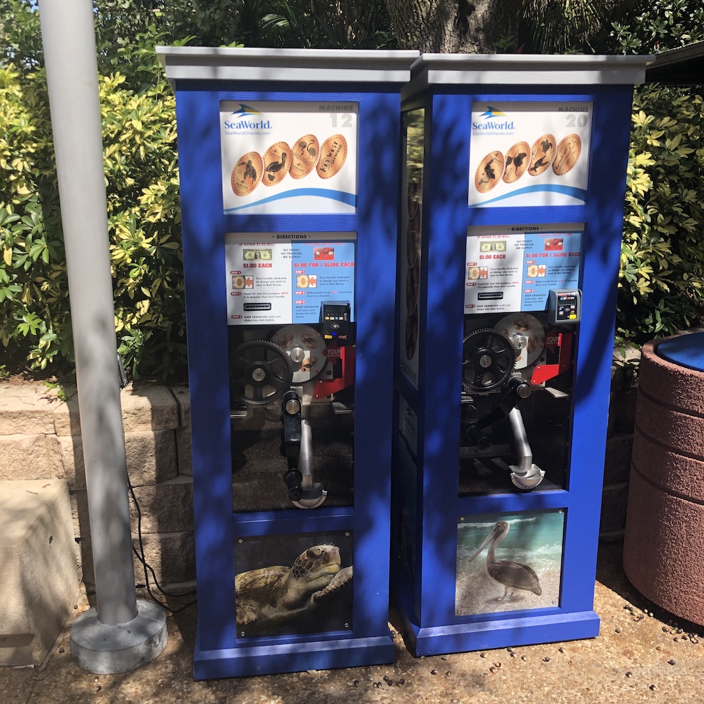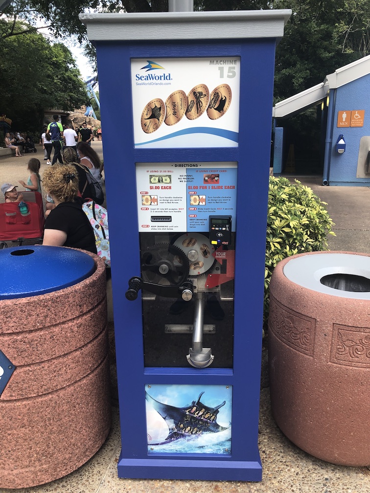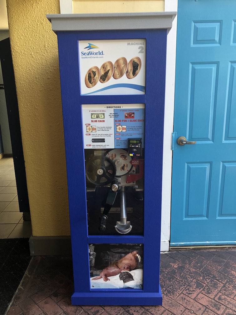 Now let’s get down to business and start reviewing all the pressed penny machines. The first machine is in the SeaWorld Store right at the front of the park after you scan in with your park ticket.