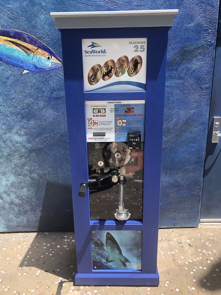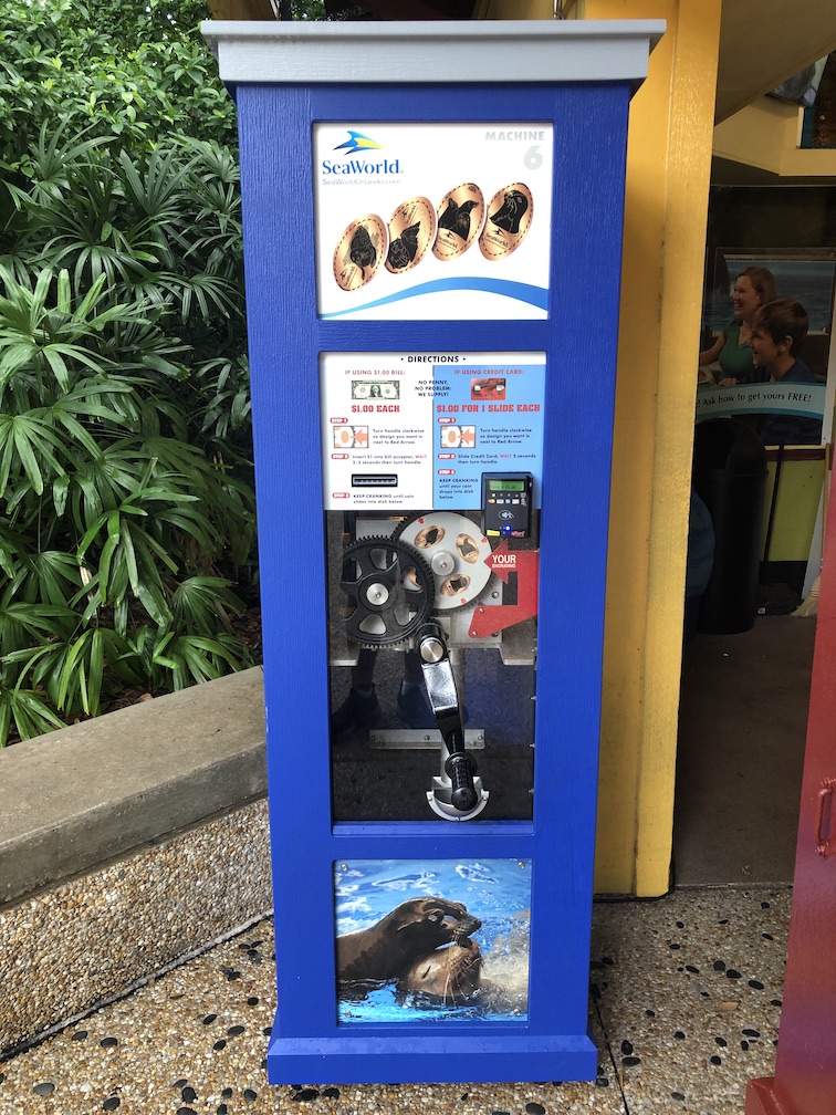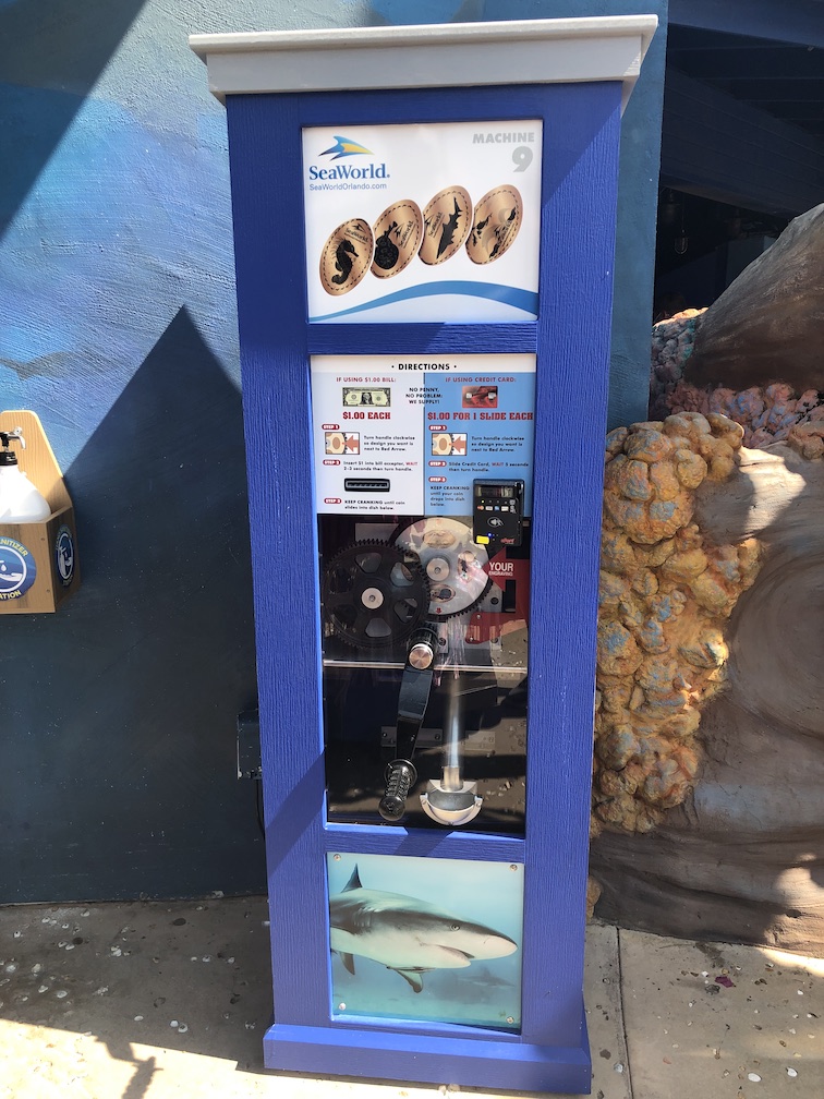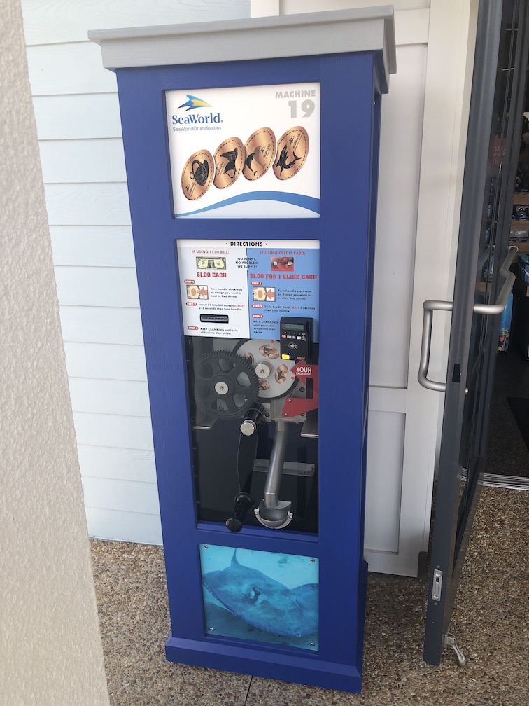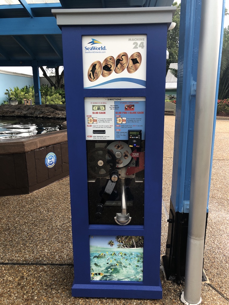 Now let’s get down to business and start reviewing all the pressed penny machines. The first machine is in the SeaWorld Store right at the front of the park after you scan in with your park ticket.