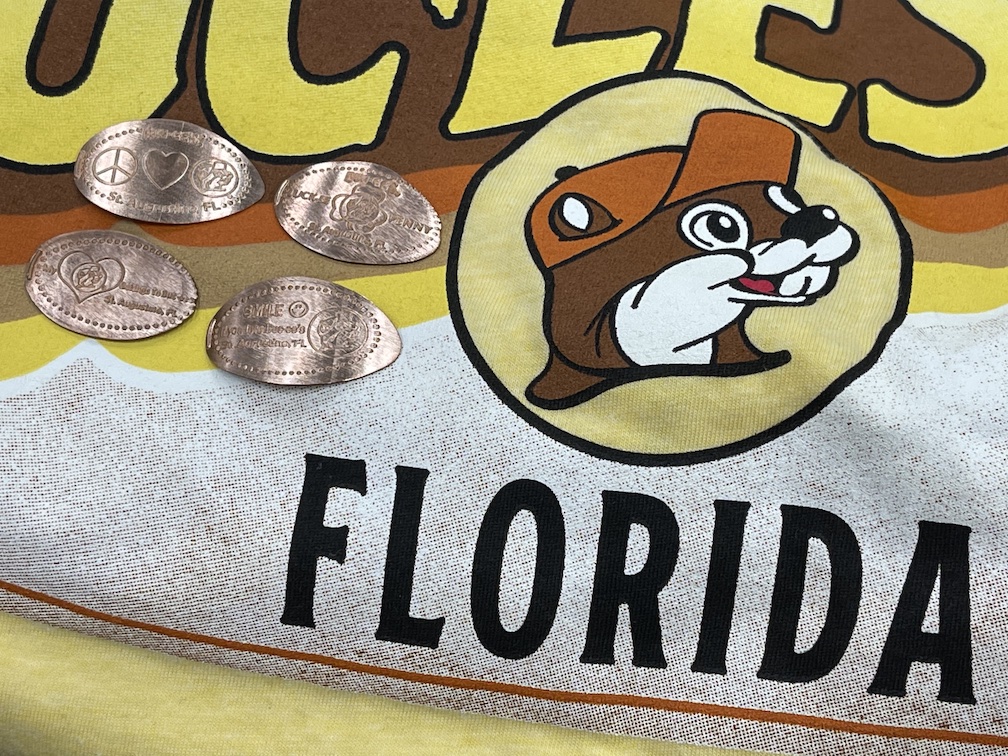 On many of my travels hunting down pressed coins I’ve stopped at more than my share of roadside rest areas or truck stops to take a break from the long hours behind the wheel. Most of these places are quickly forgotten, and left behind after a quick fuel fill-up or fast food meal. However there is a chain of interstate gas stations and convenient stores that have garnered quite a following. Buc-ee’s opened their first location in Lake Jackson, Texas back in 1982 and since then has grown to over 39 locations. Originally they were only found throughout Texas but have in more recent years started to expand into some other southern states like Alabama, Georgia and just within the past couple months here in Florida.