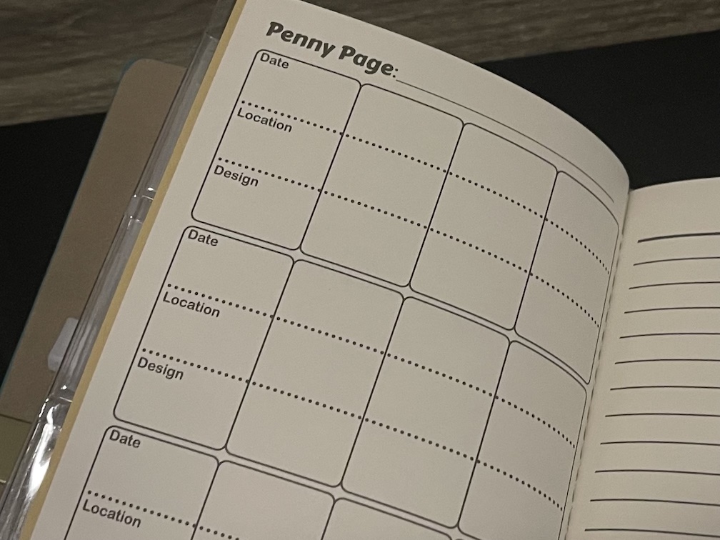 The journal then has pages with cool tables where you can list the date, location and design for each of your newly pressed coins.