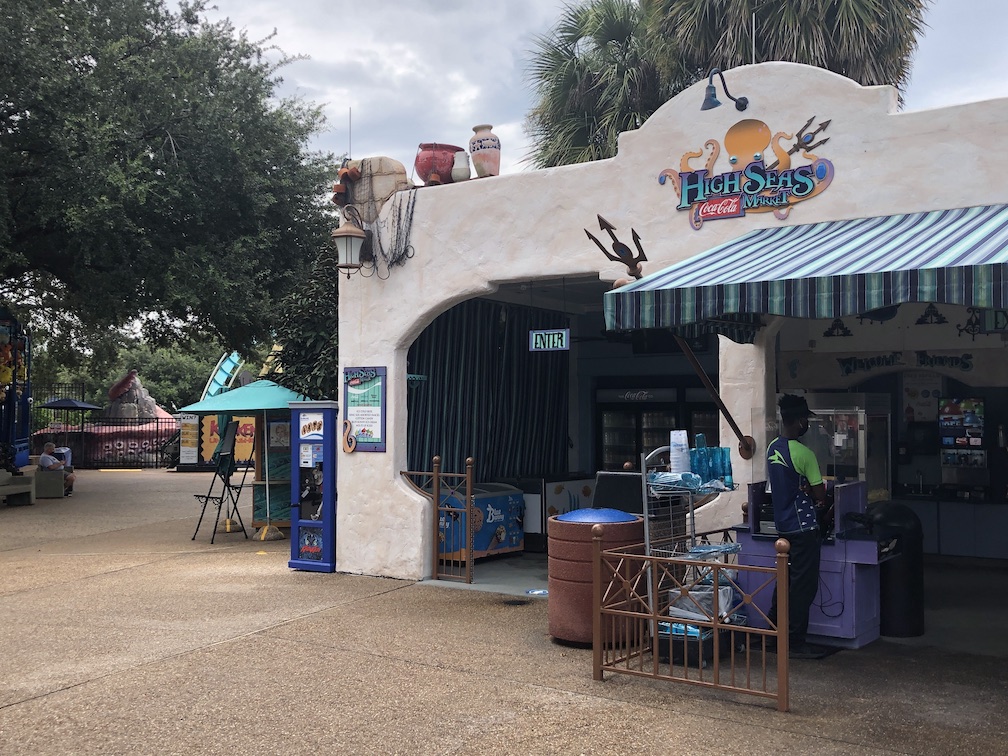 Beyond the Journey to Atlantis ride and near the Kraken coaster we found the High seas Market which sells some grab and go drinks and small snacks like pretzels and popcorn.