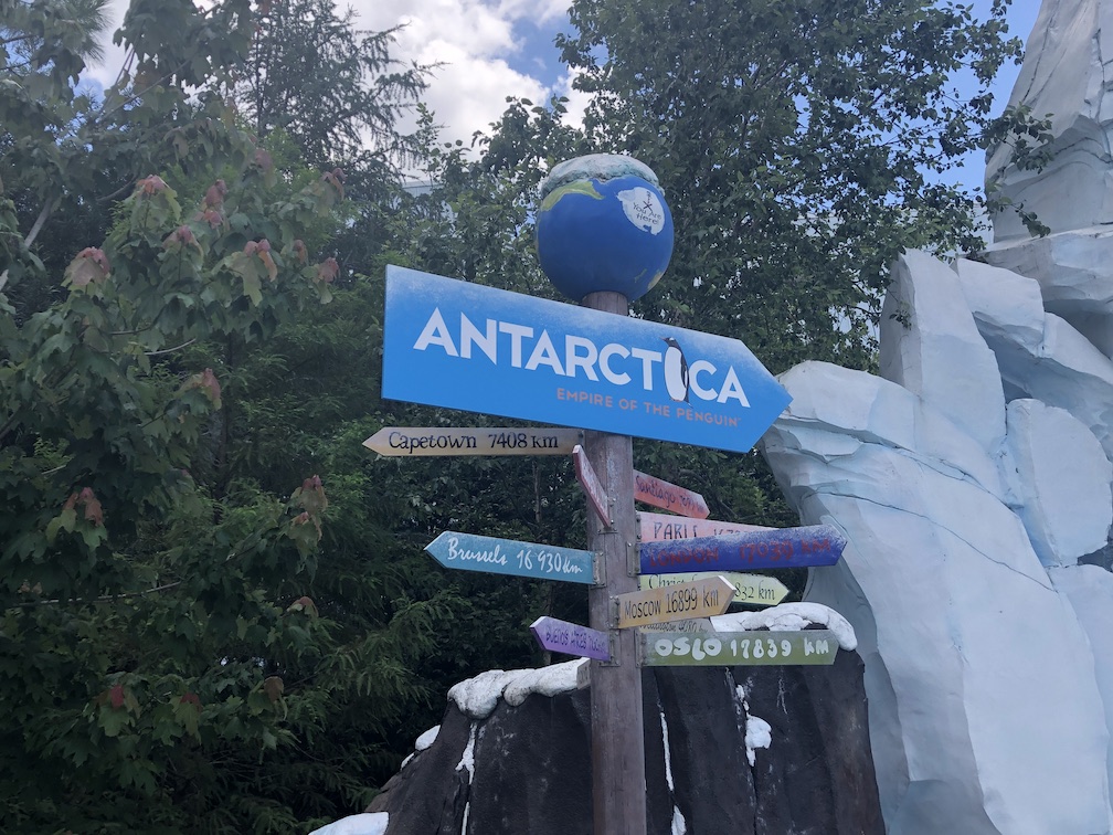 After eating we were in the home stretch of finding these last few machines, and were energized after a nice lunch. We exited the Antartica section, past the Pacific wharf area and found a machine in a unique location.