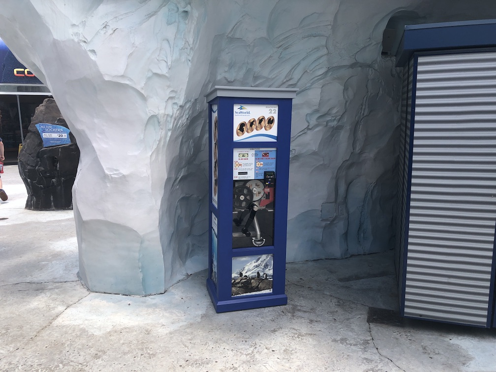 My daughters love this area just with all the fake ice and snow decorations around, plus they love penguins. The above machine is located just at the exit from the Penguin exhibit, but you don’t actually have to go through it to find the machine if you prefer to not get too cold. It’s freezing inside there. But instead you can just access the machine in this outside area near the lockers.
